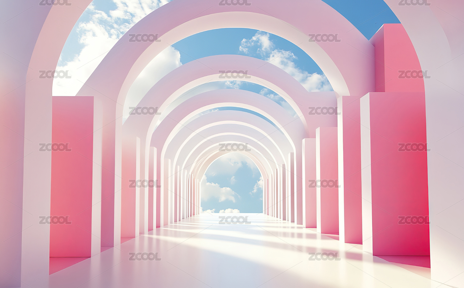 粉蓝拱窗抽象展示场景