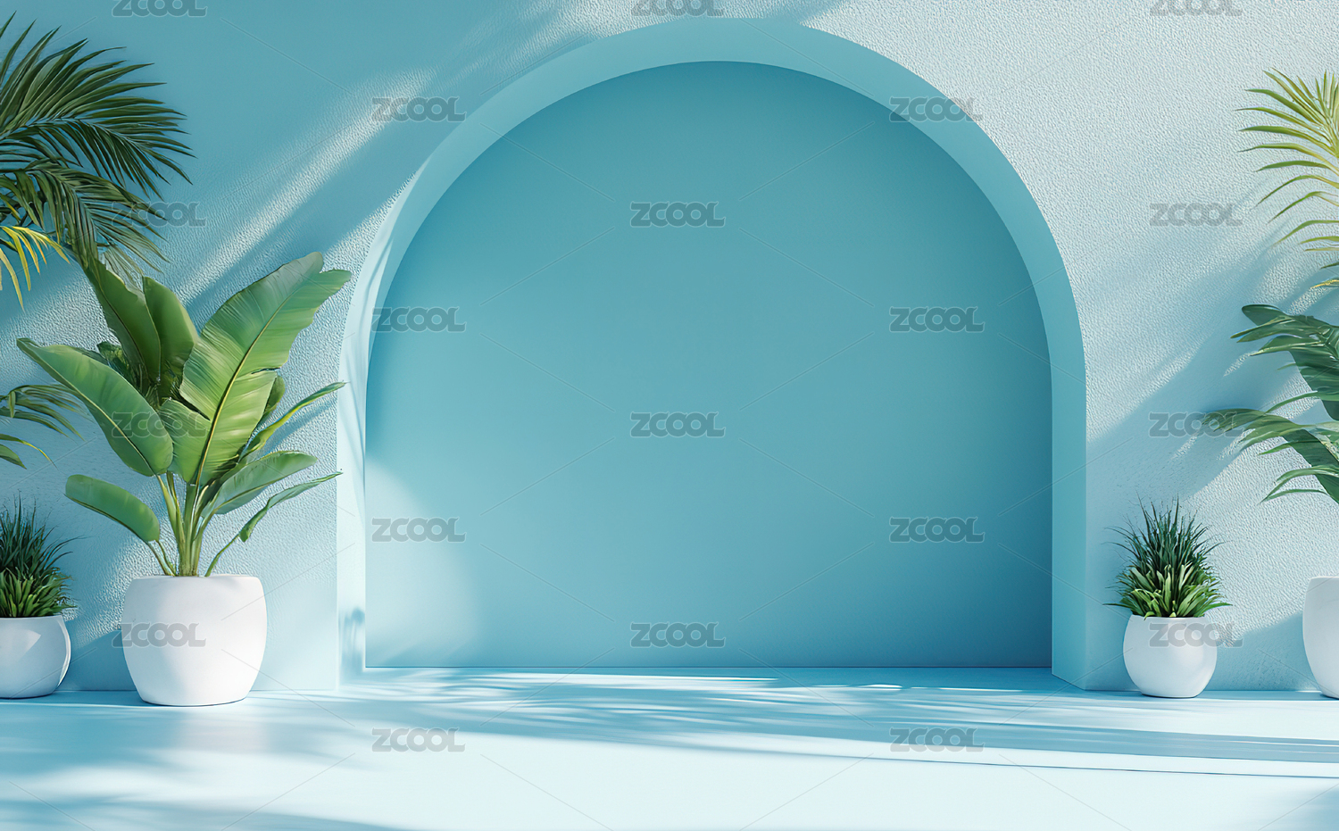 蓝色植物拱门电商展台