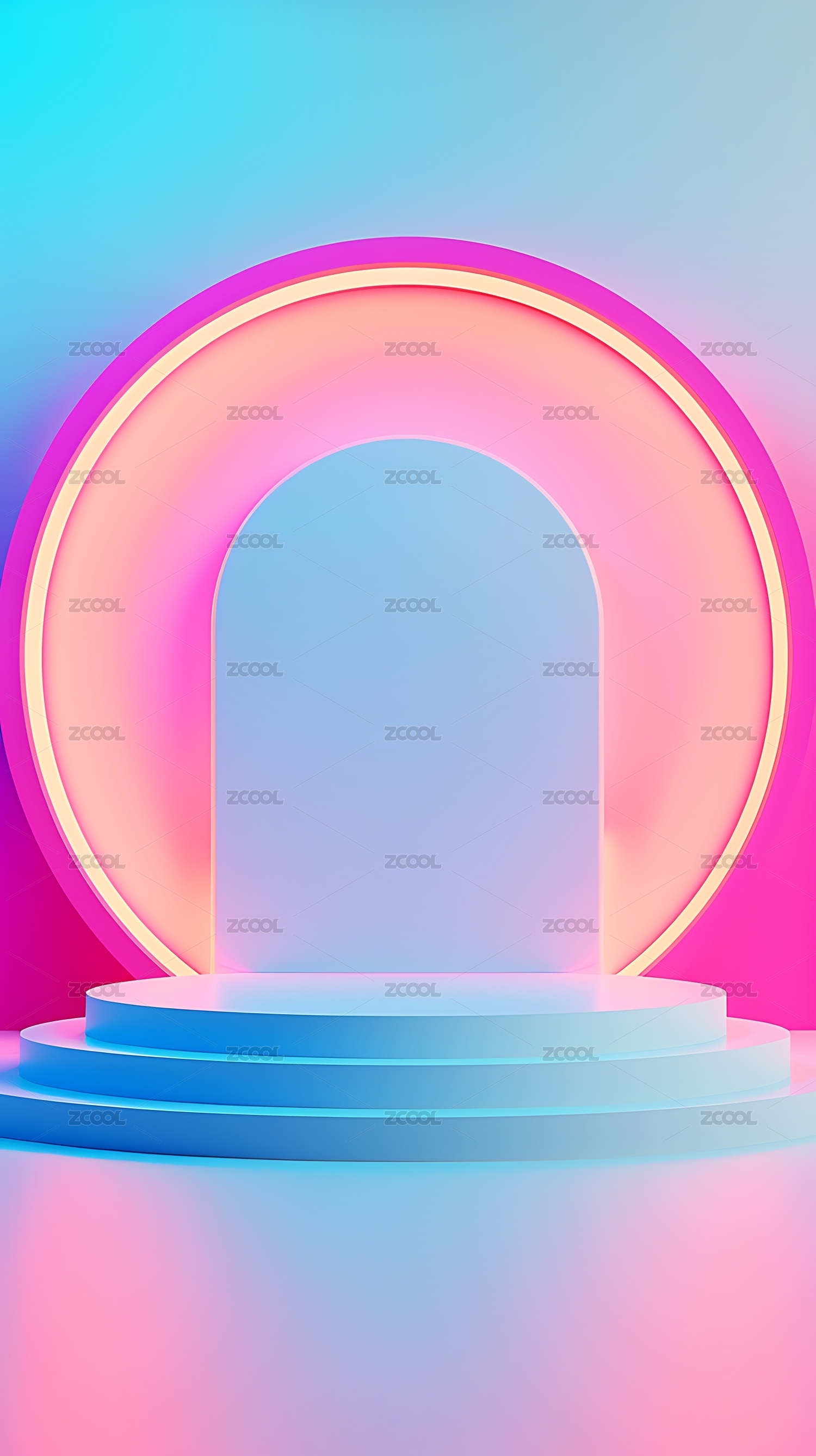 粉色霓虹灯拱形展台背景图