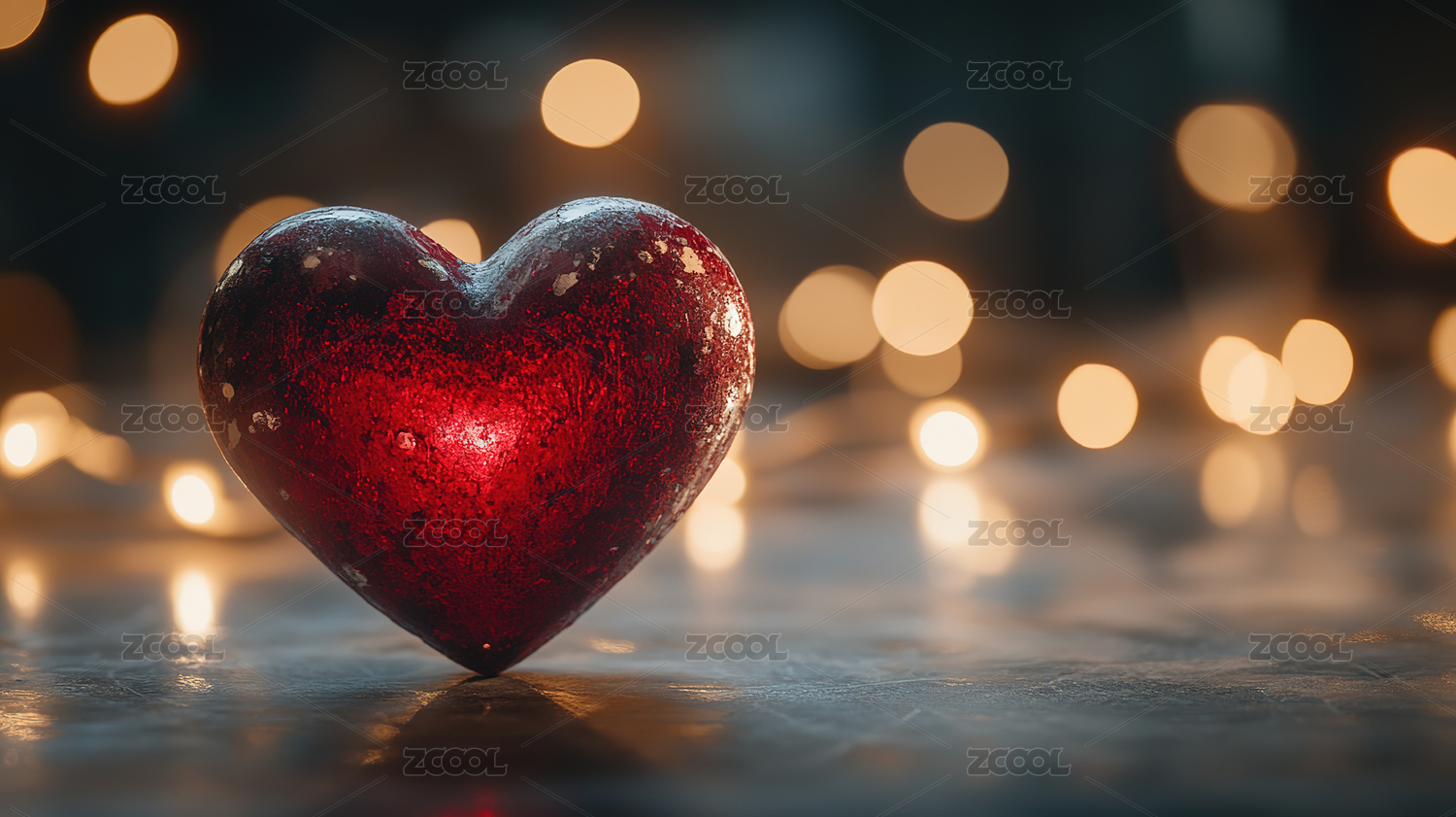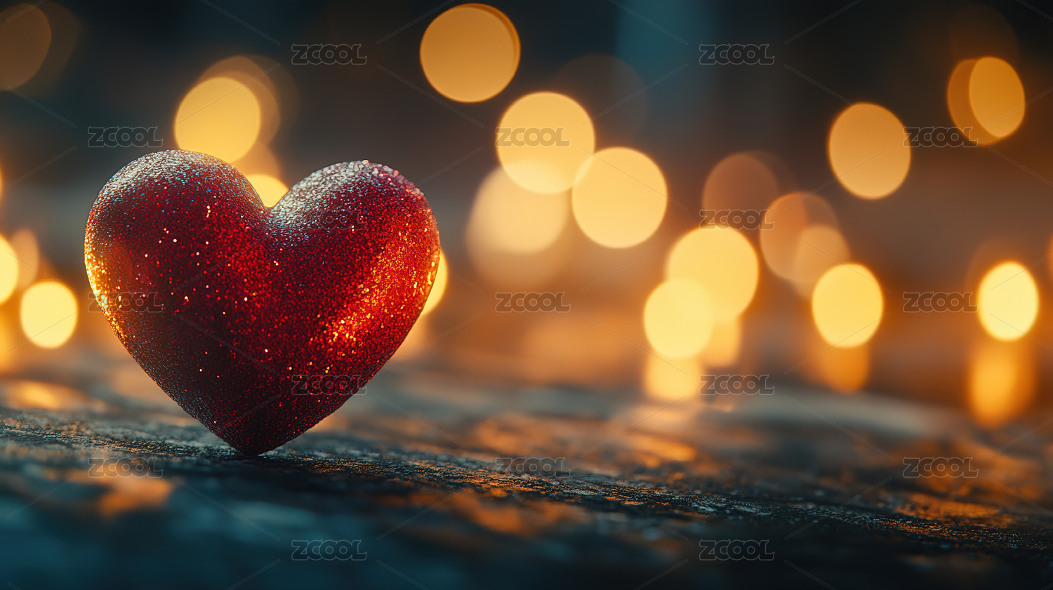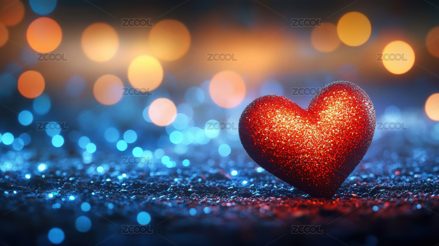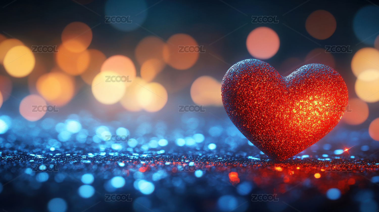 闪烁光斑中的红色爱心