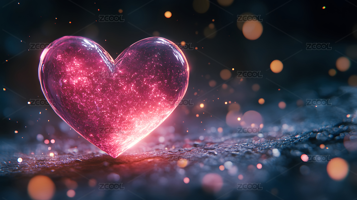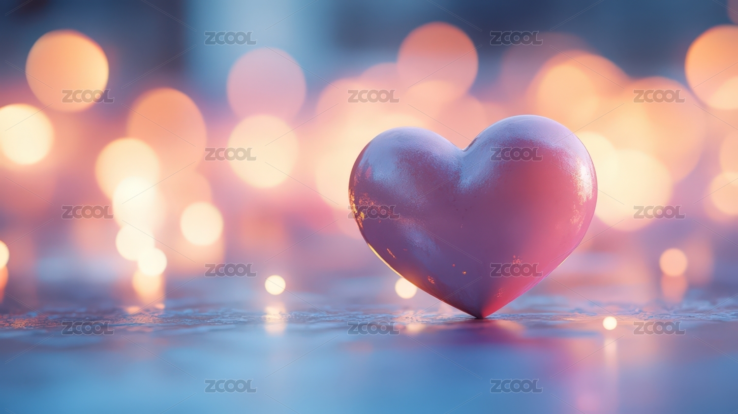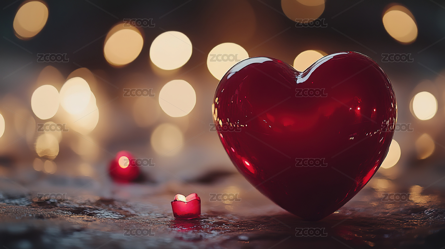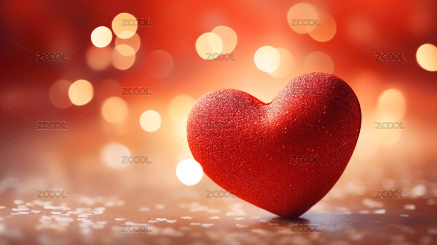闪烁光斑中的红色爱心