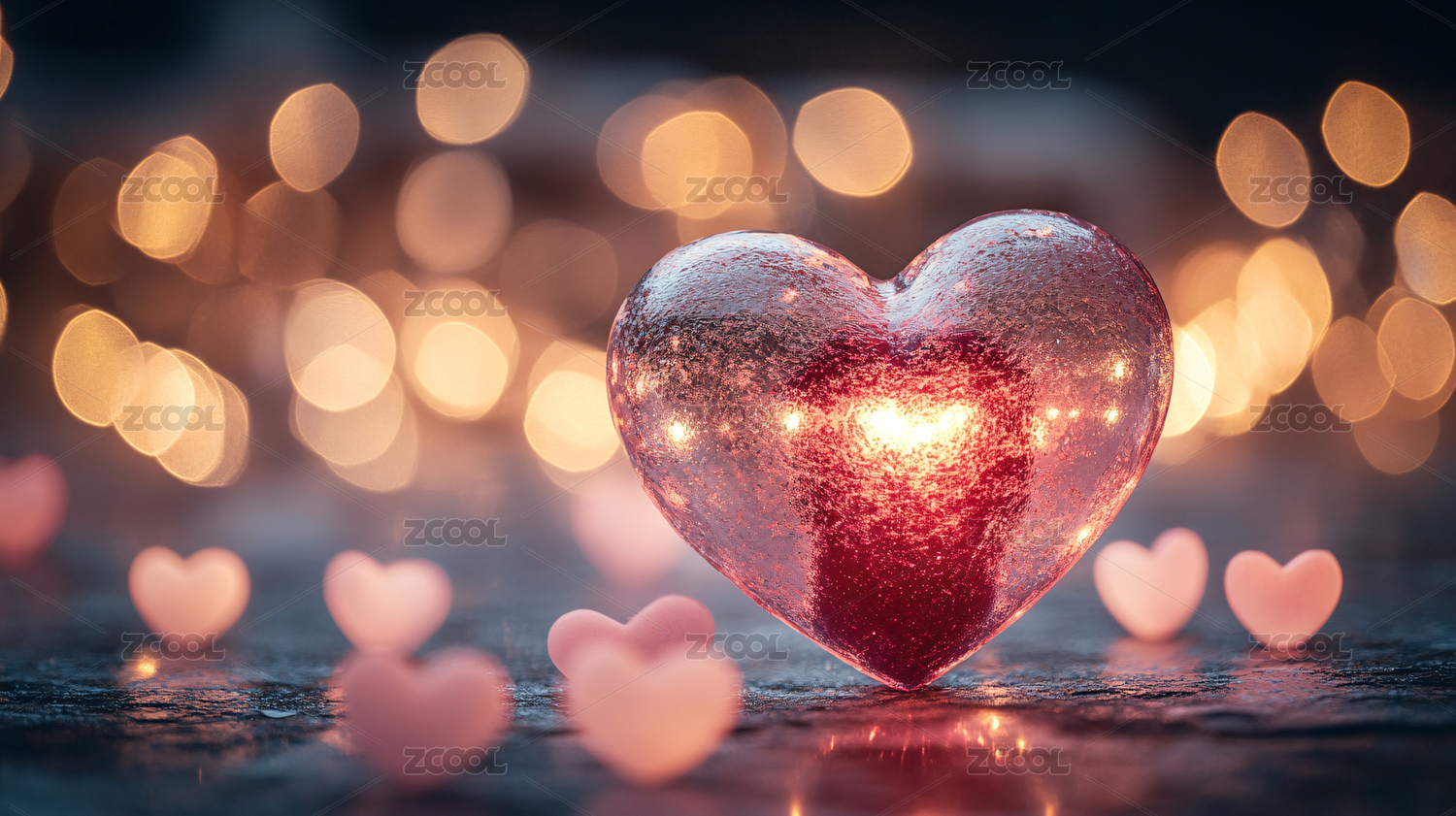 灯光照射下的心形特写