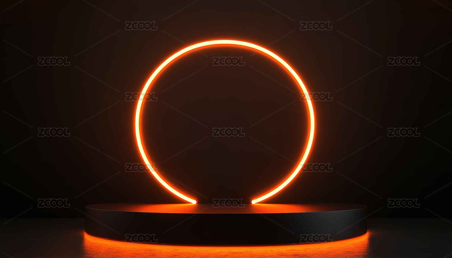 橙色霓虹圆环与发光平台