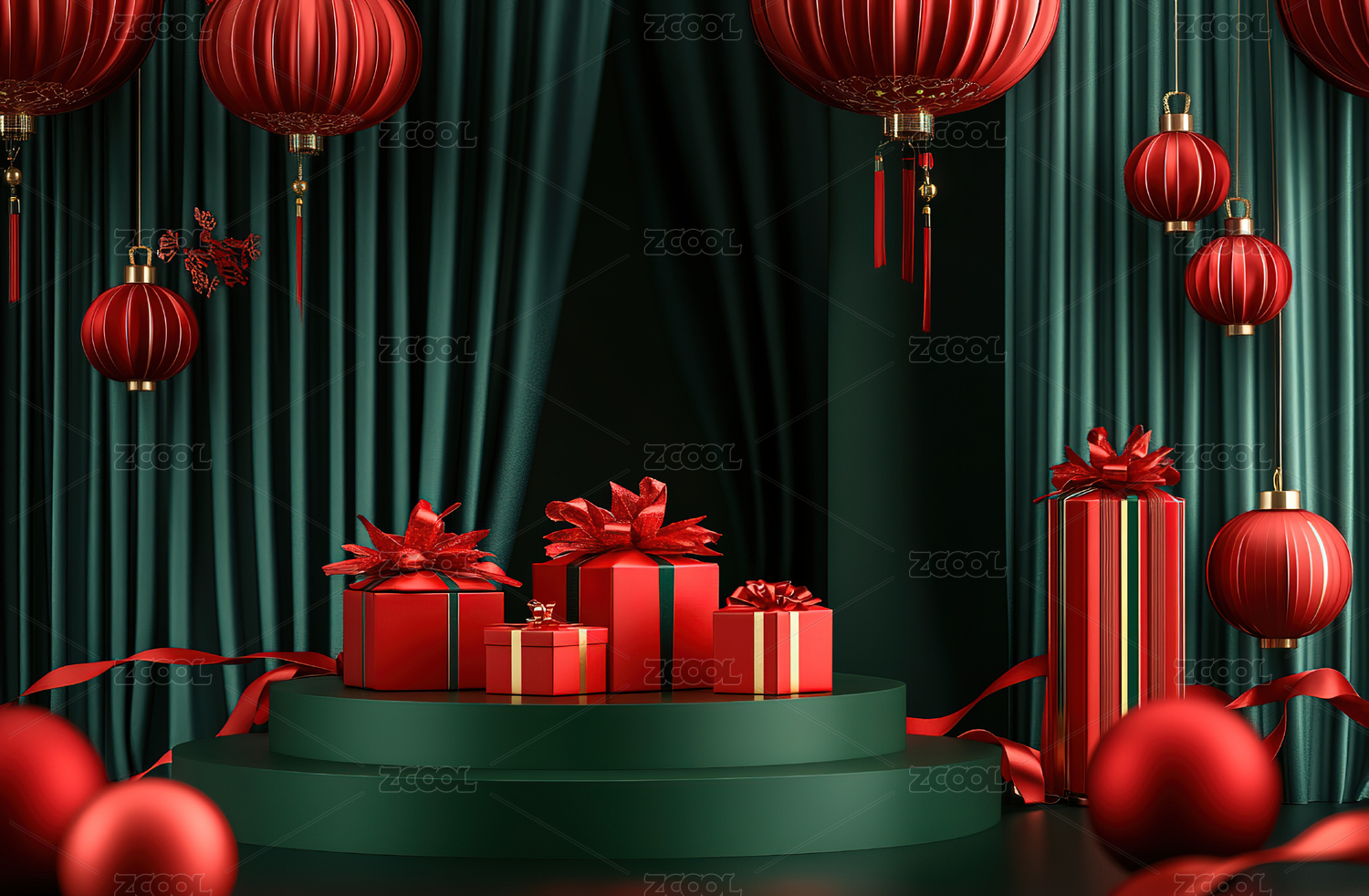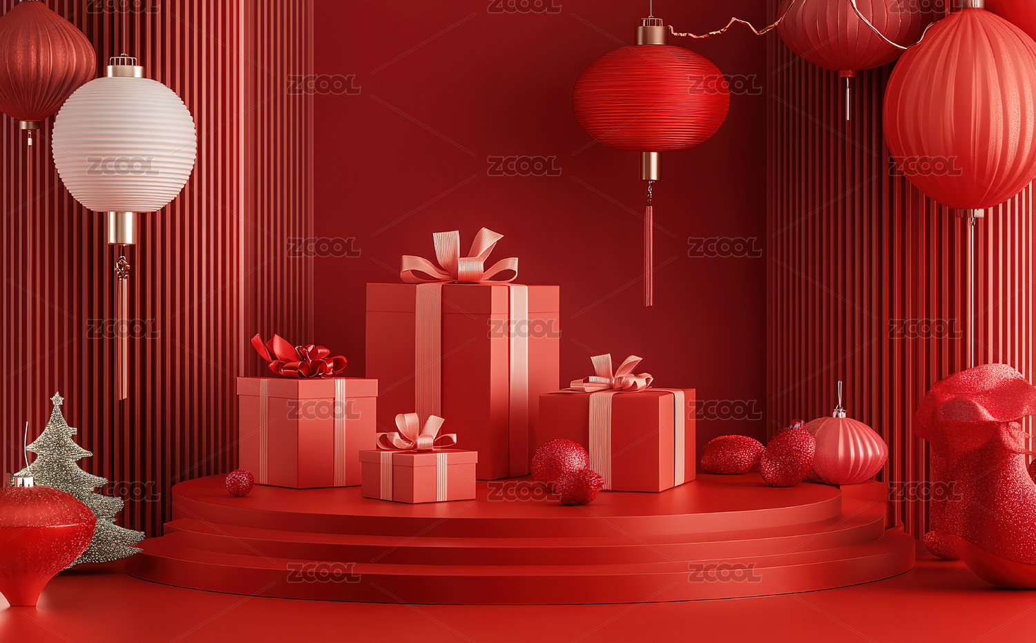 红色背景下的节日装饰
