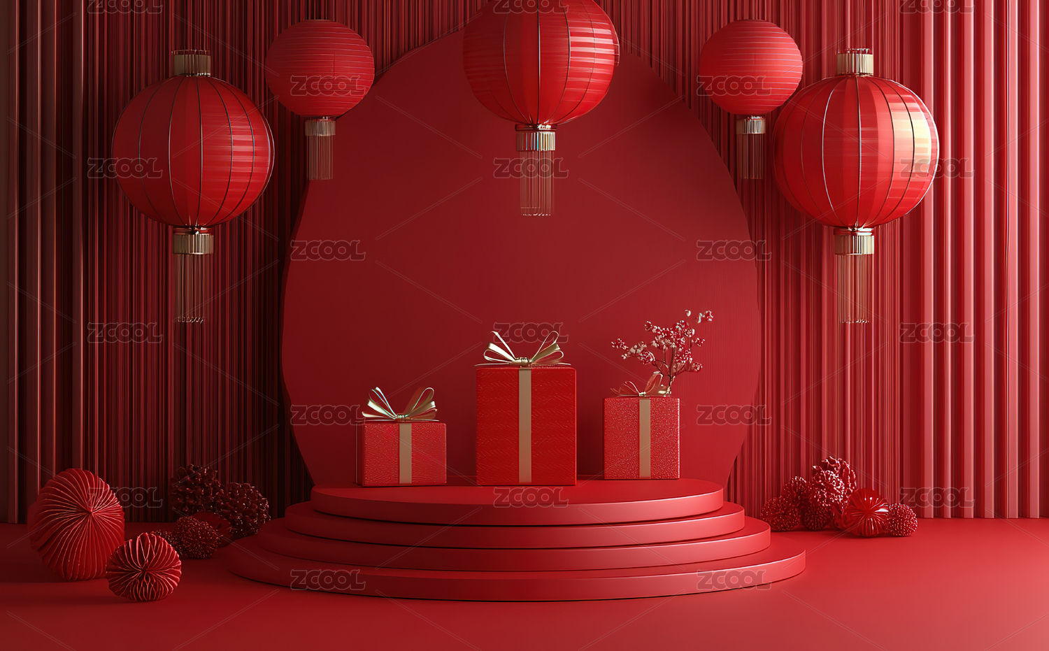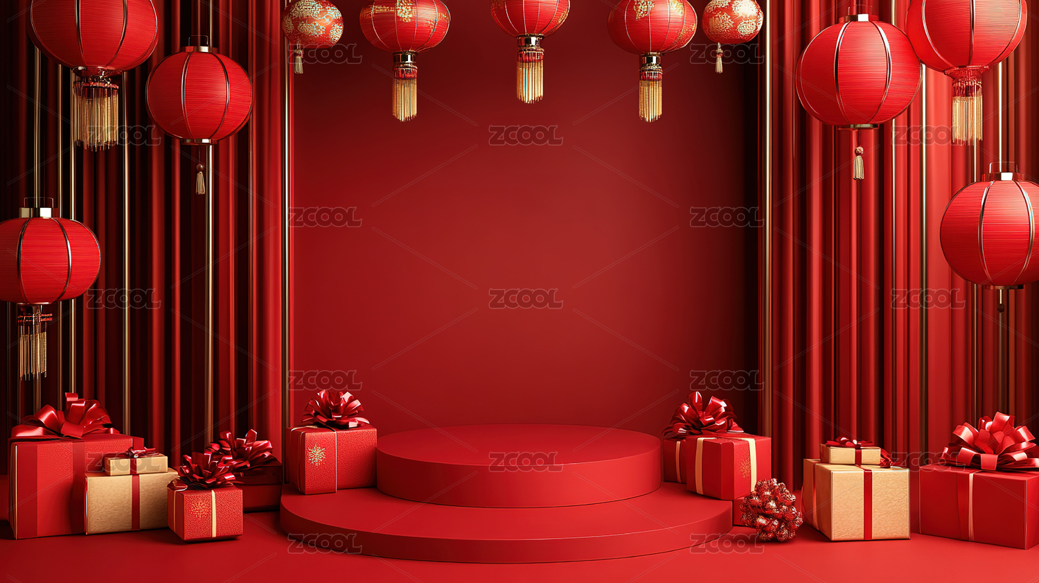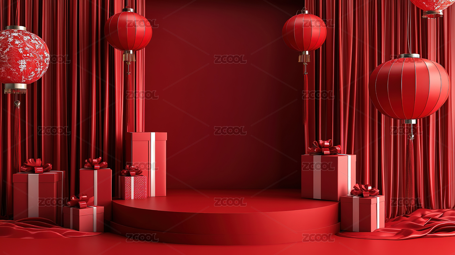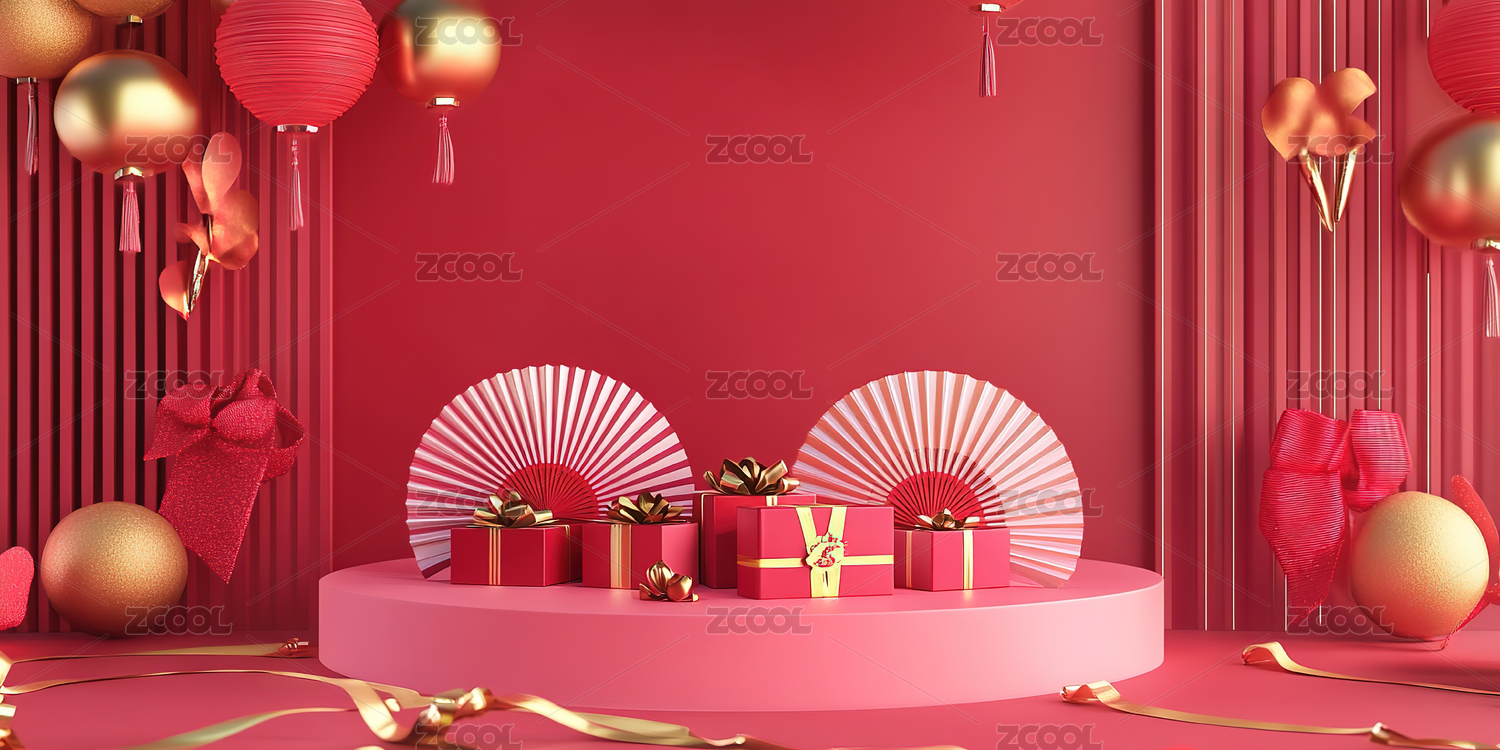 红色背景下的中式礼物