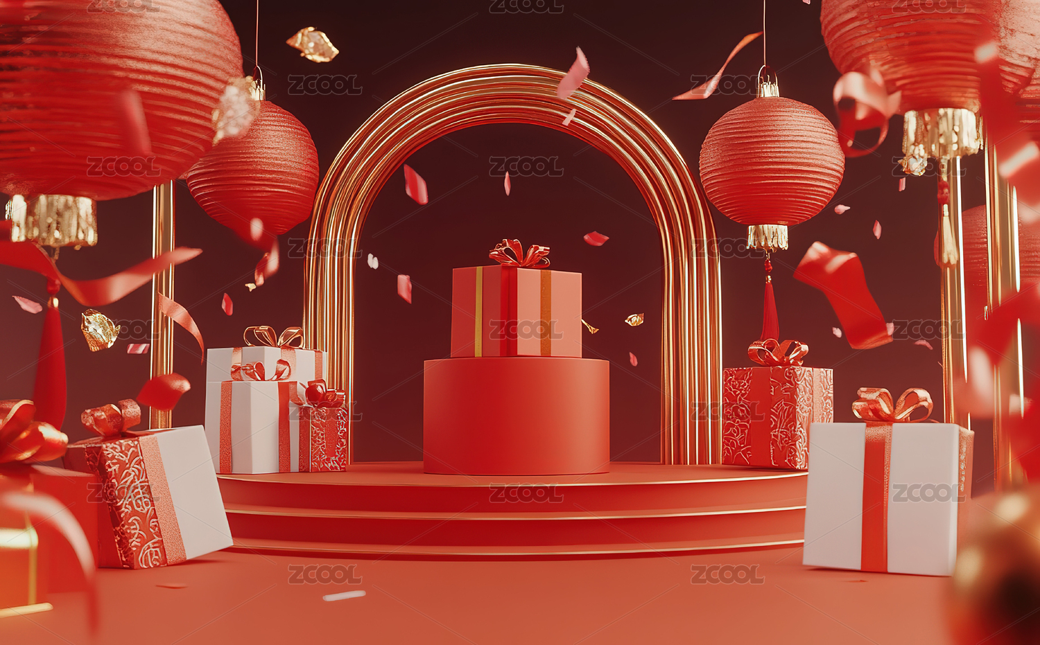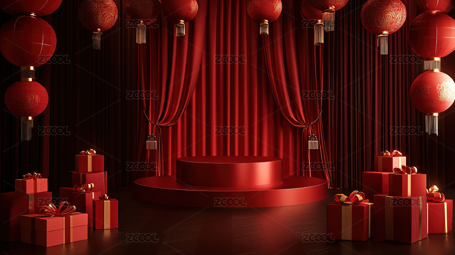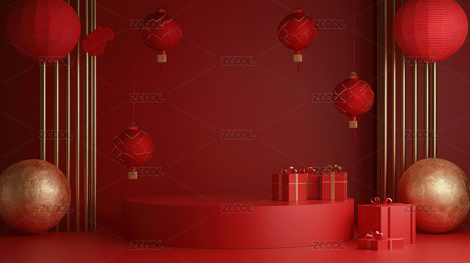 红色背景下的中式礼物