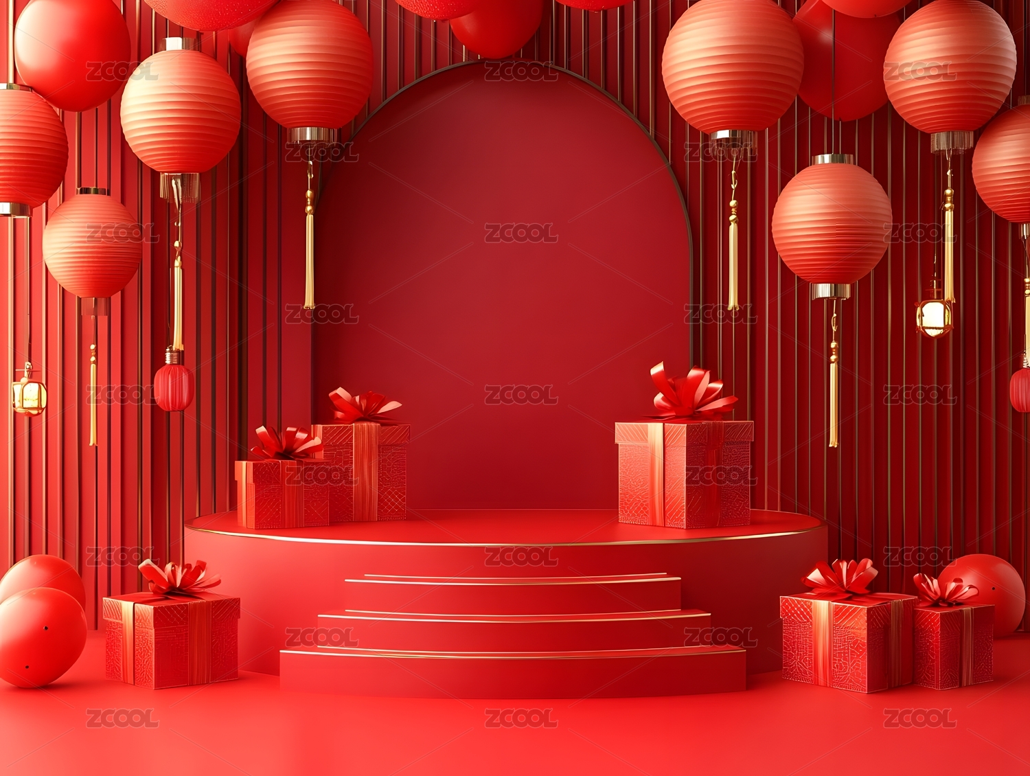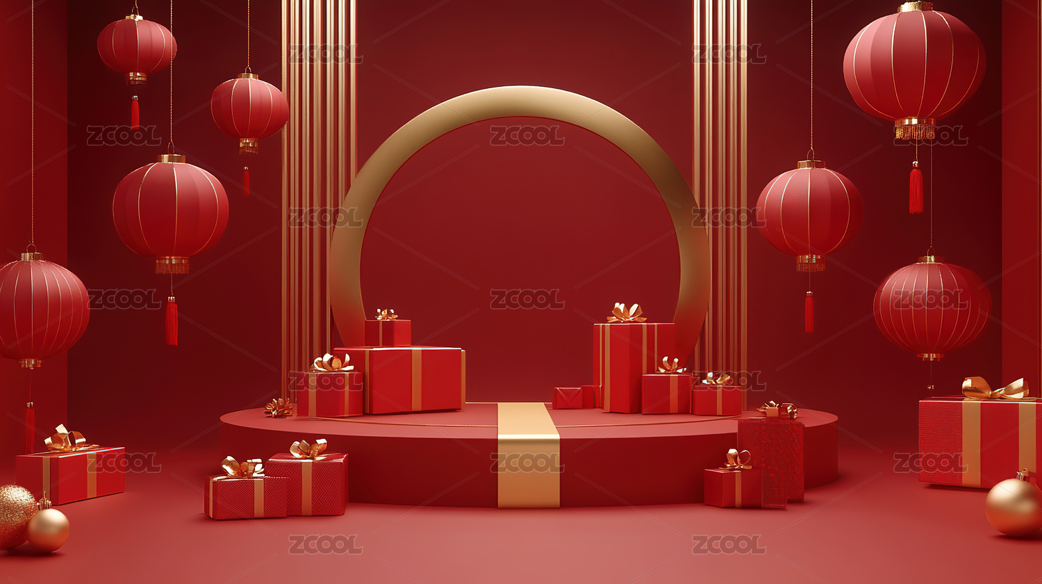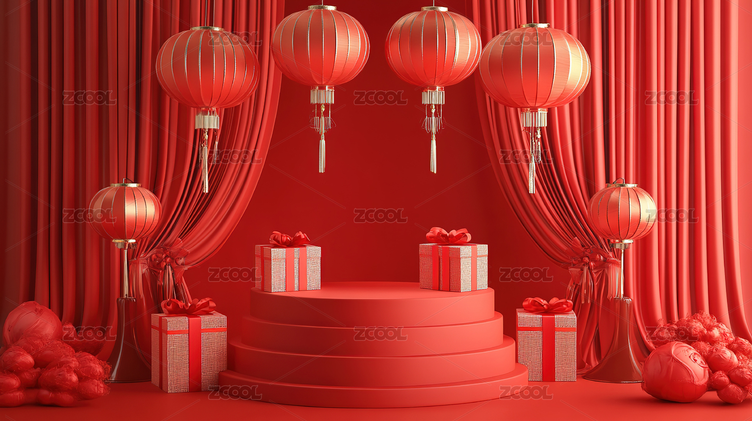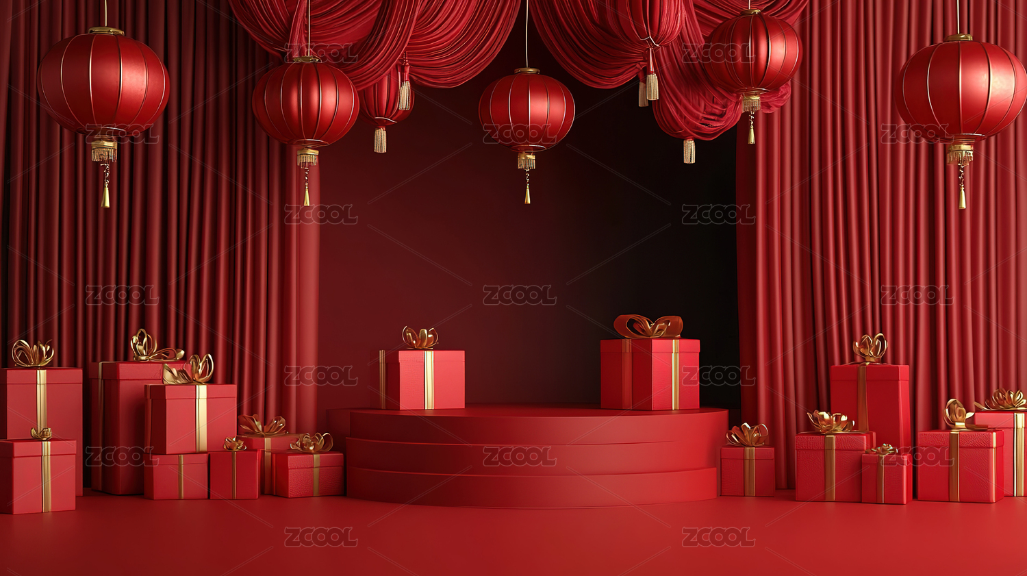 红色背景下的中式礼物