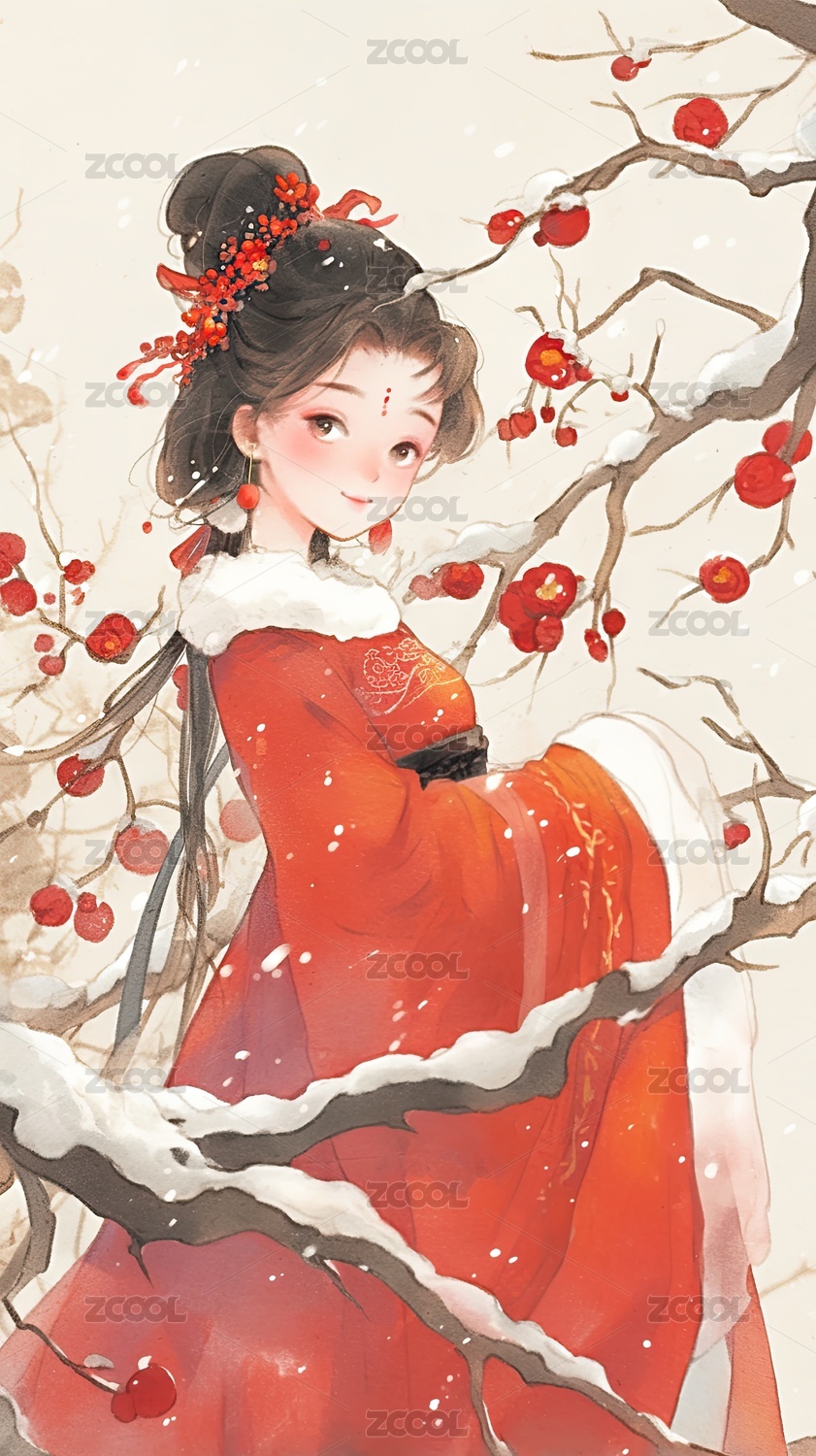 古风女子,古典女子,新年,手绘美女,包装,古风插画,插画美女,手绘,古风,古风美女