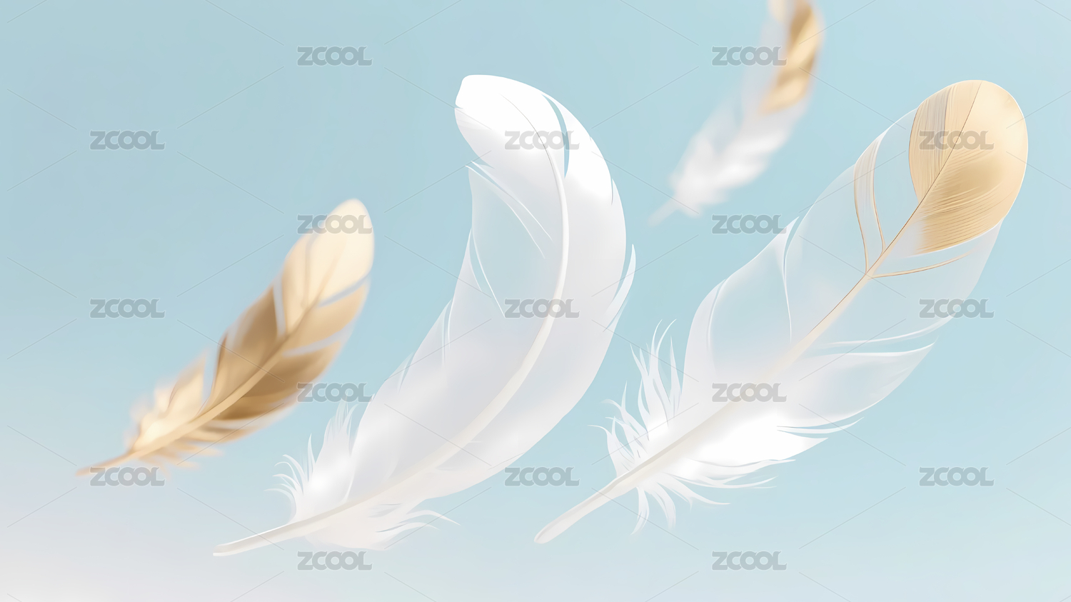 浅蓝背景白金羽毛