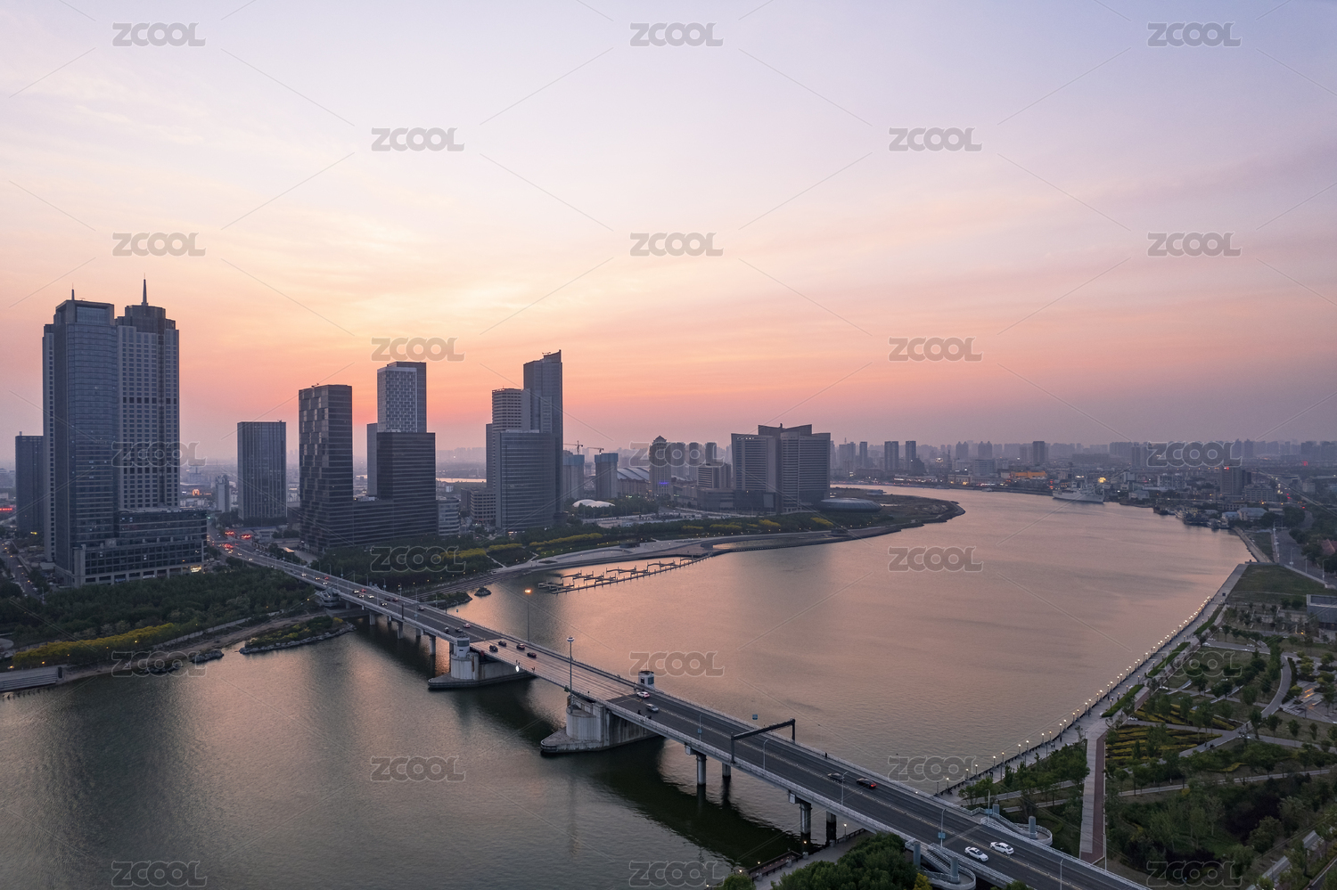 武汉汉江傍晚城市风光