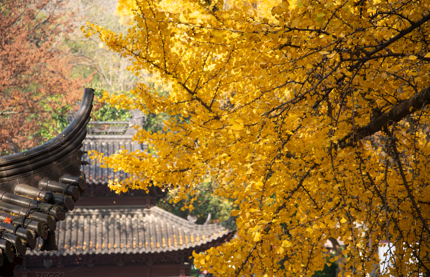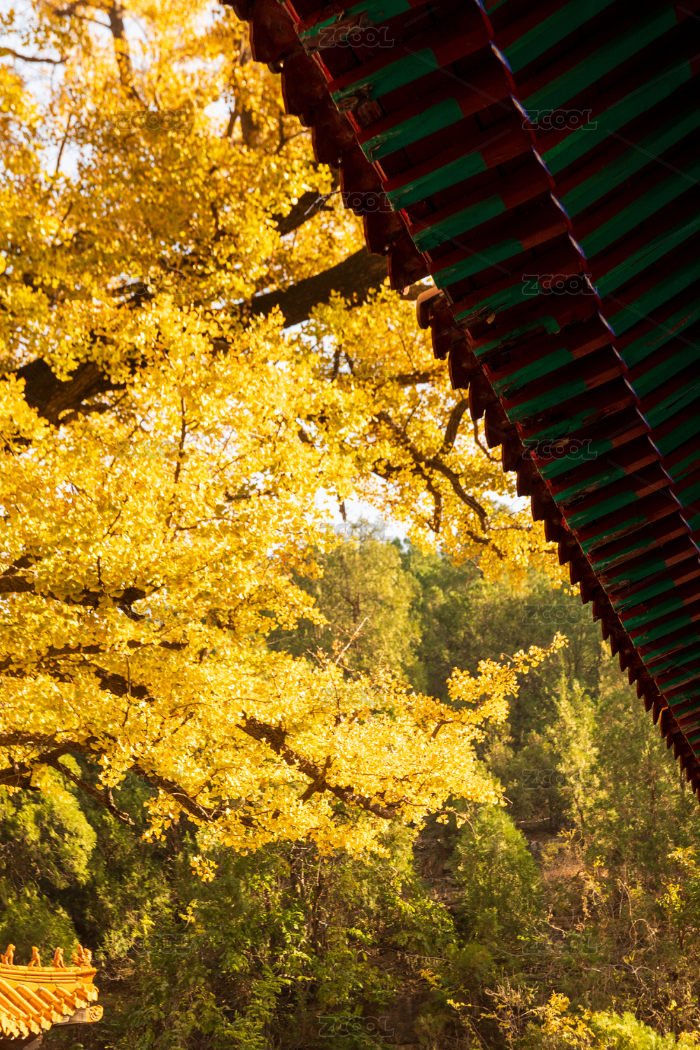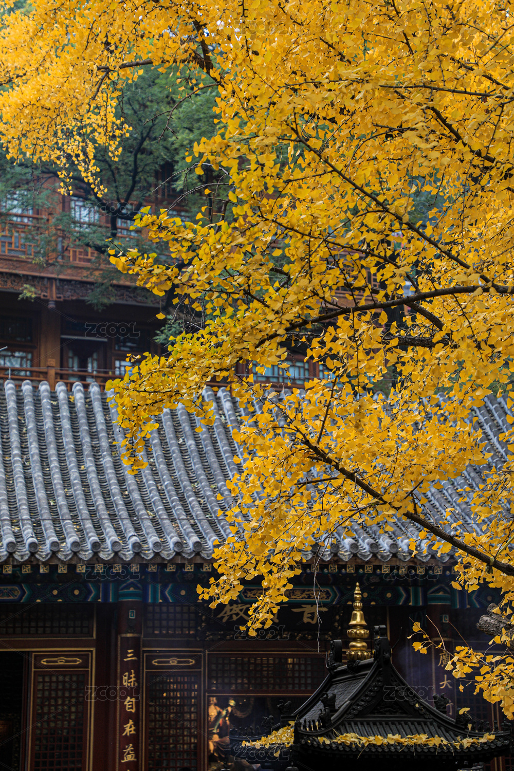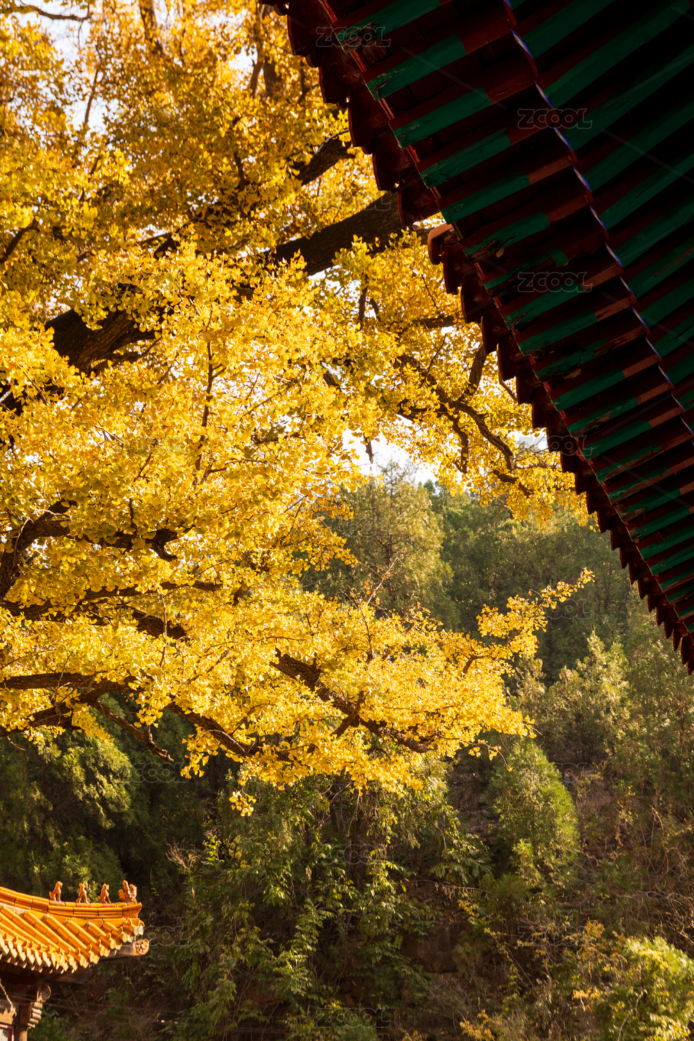 山东济南淌豆寺秋天黄色千年银杏树叶子金黄