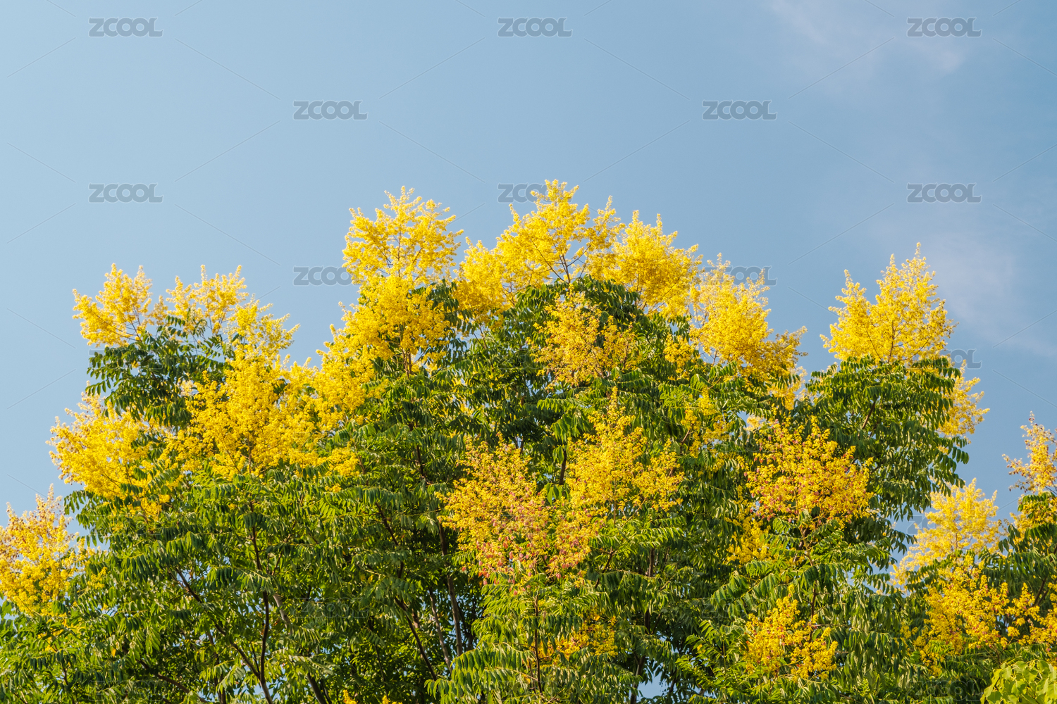 黄金串钱柳与蓝天