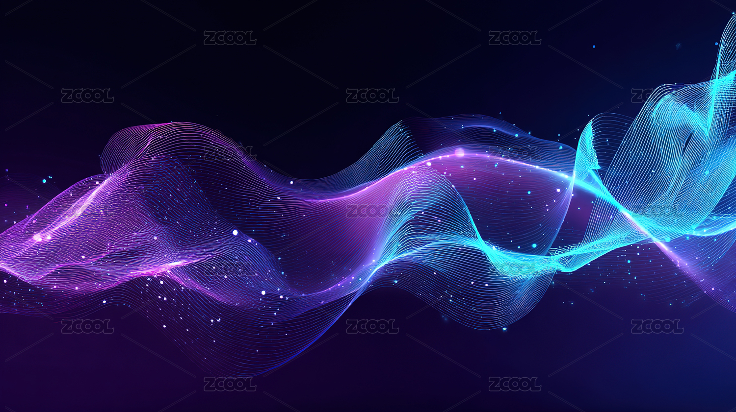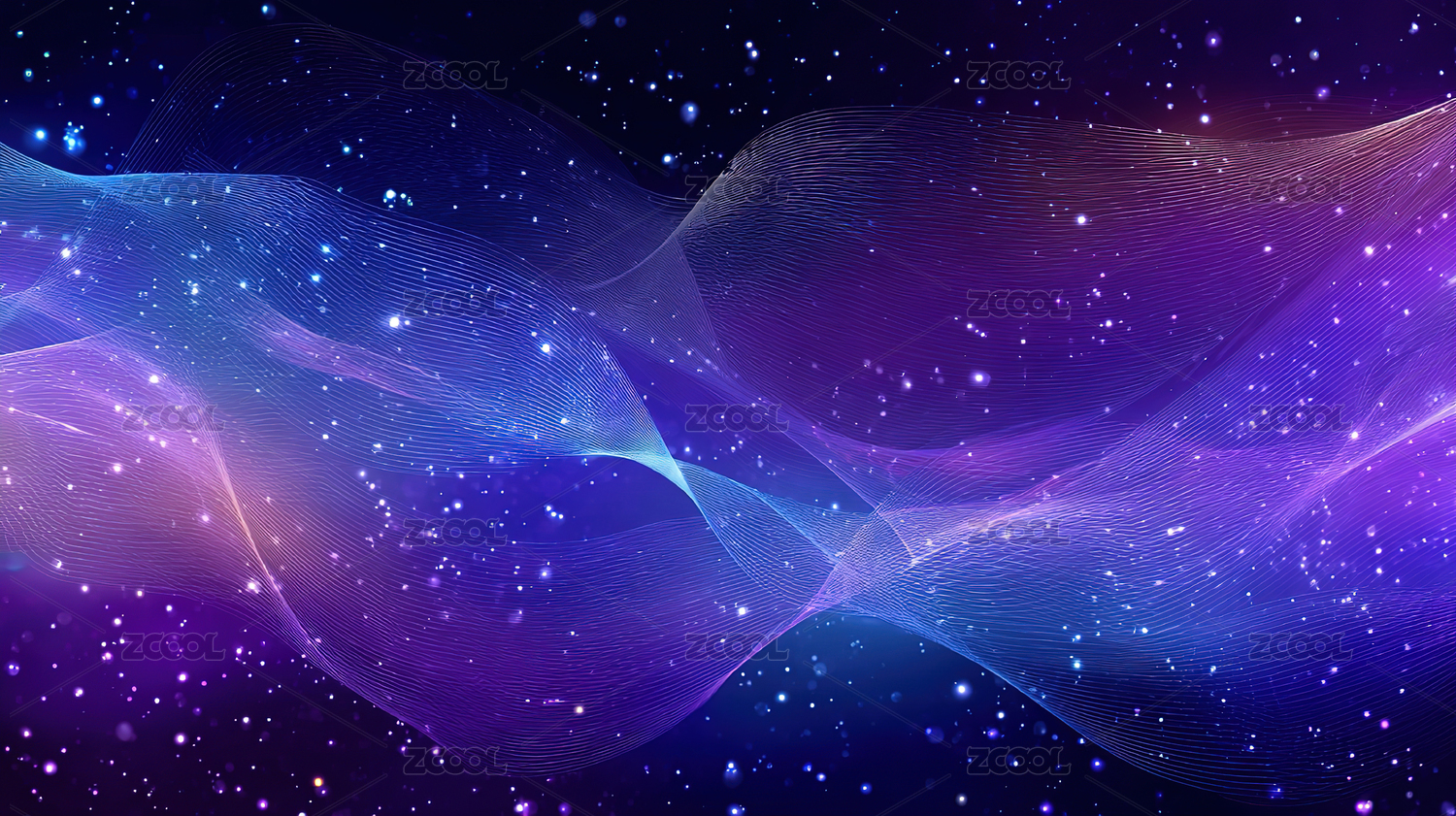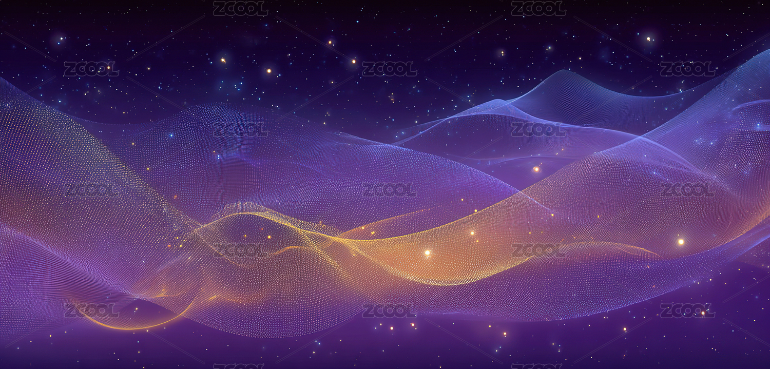 紫色波浪线条与光点背景