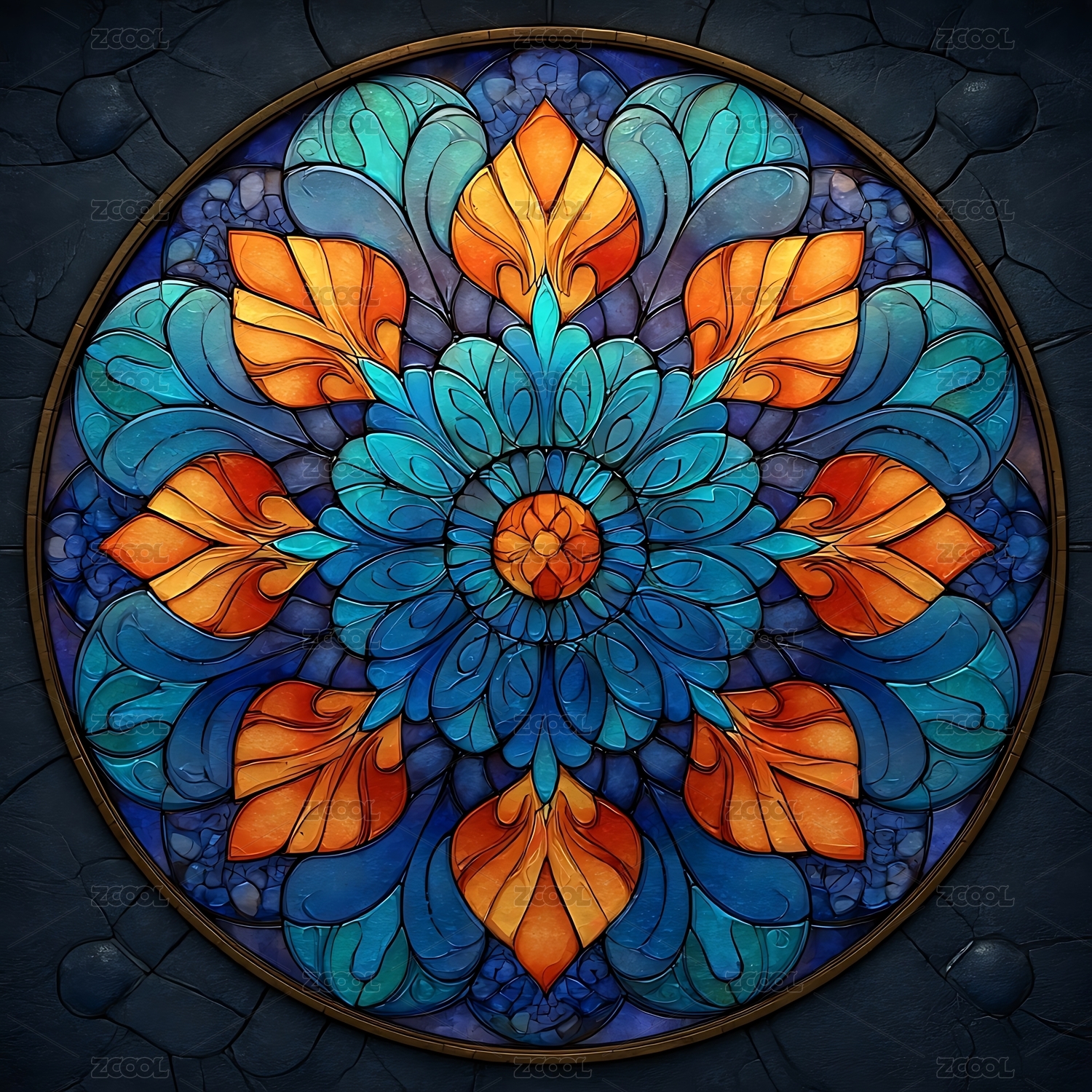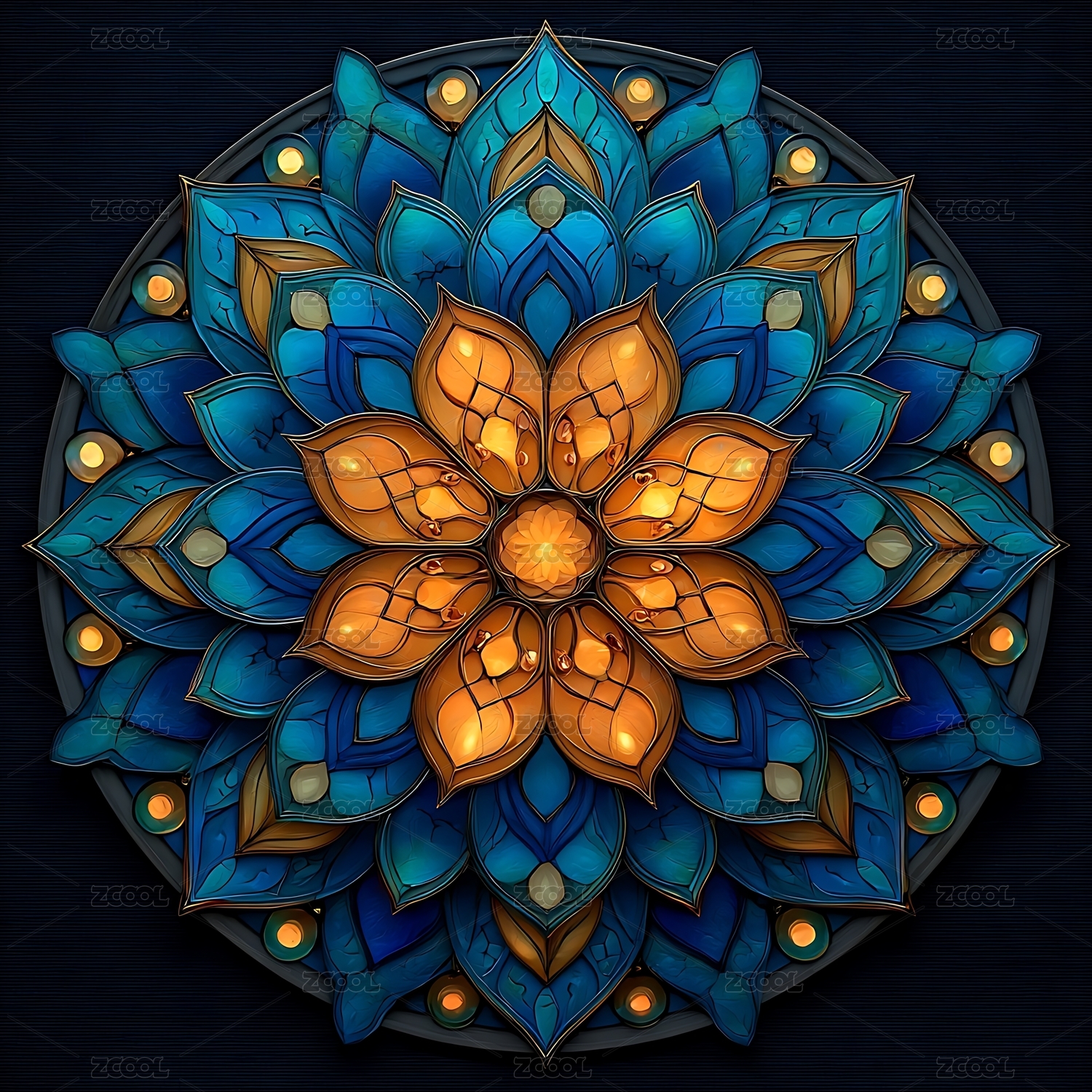 中国风线圈插画中国古代敦煌藻井花纹曼陀罗
