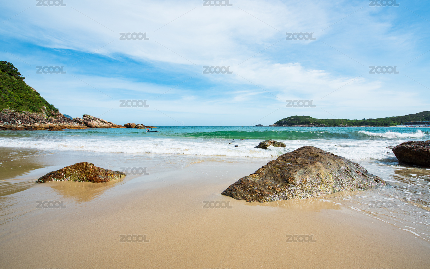 中国深圳东涌海岸夏日海浪与蓝天白云