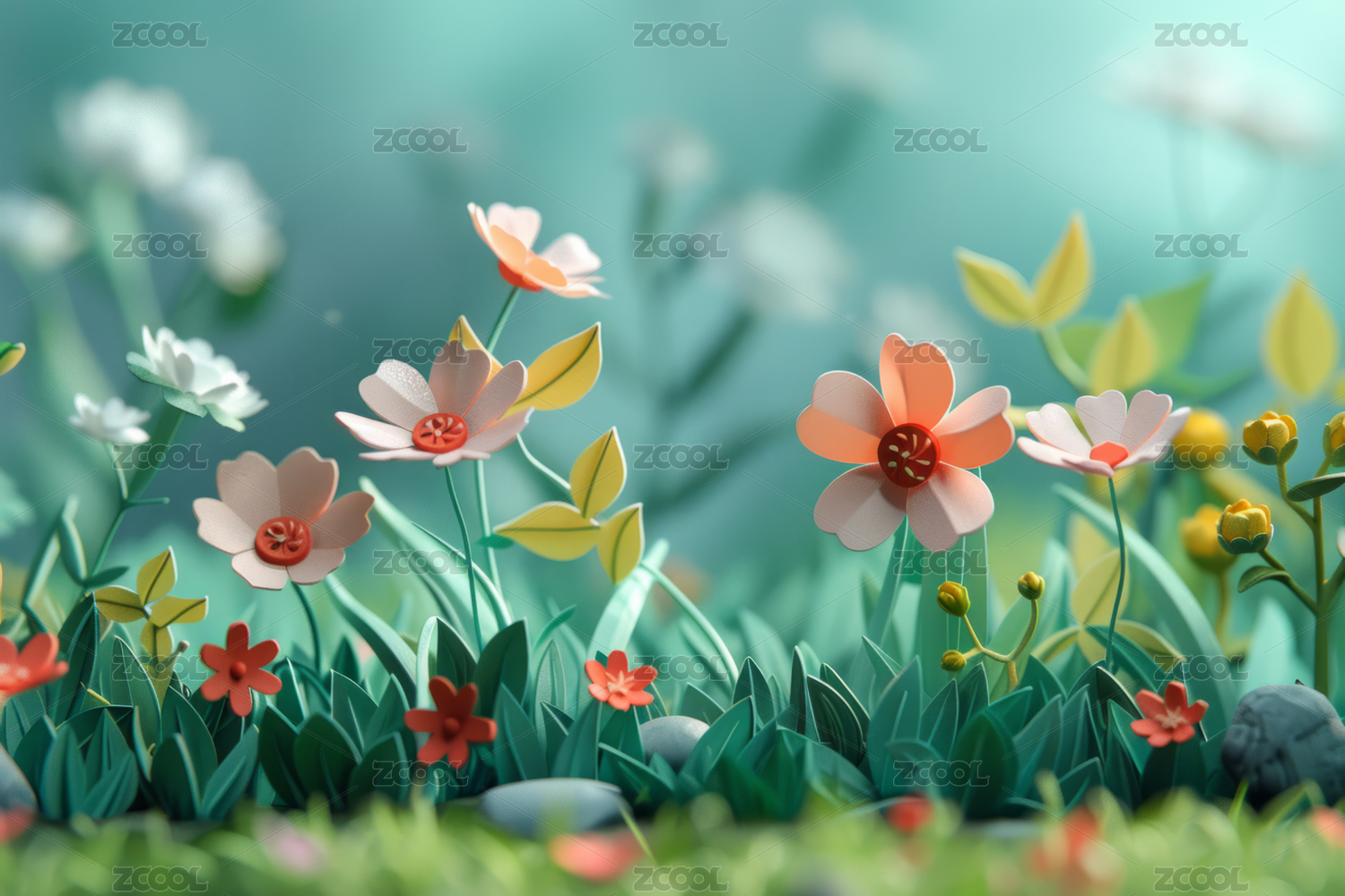 梦幻,童话,渲染,3D,卡通,美好,背景,插画,公园,清新