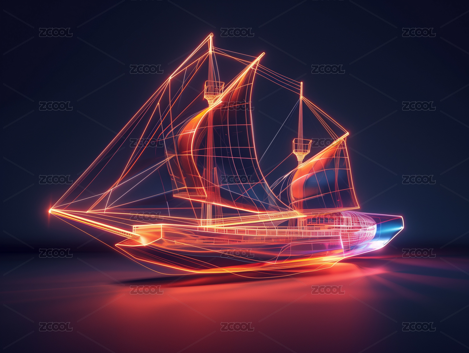 轮船,快艇,船,小船,玻璃,透明,彩色,发光,可爱,黑色背景