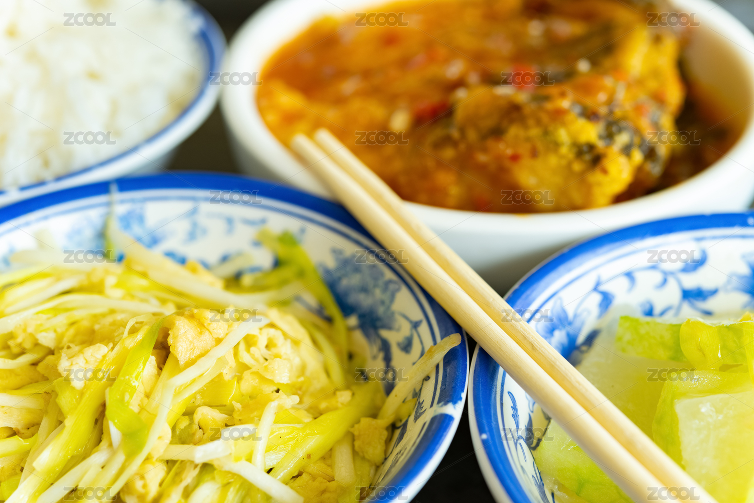 小鱼仔生菜及土豆丝配饭快餐