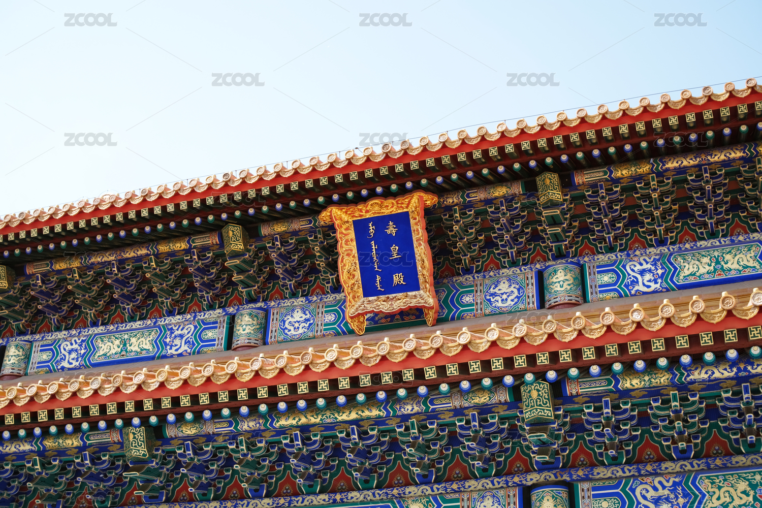 蓝天下的中国北京故宫博物馆的古宫殿寿康宫