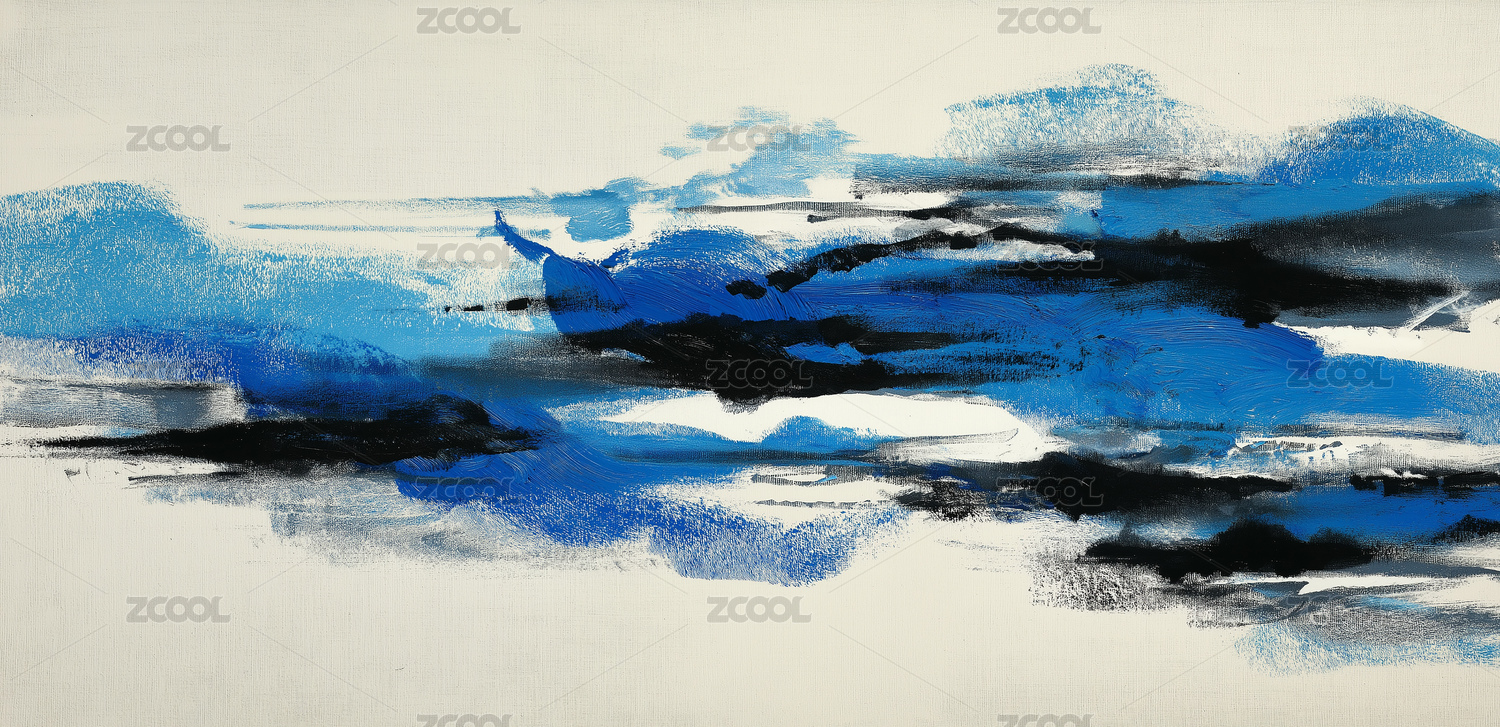 蓝黑颜料晕染交织呈现抽象艺术的空灵视觉