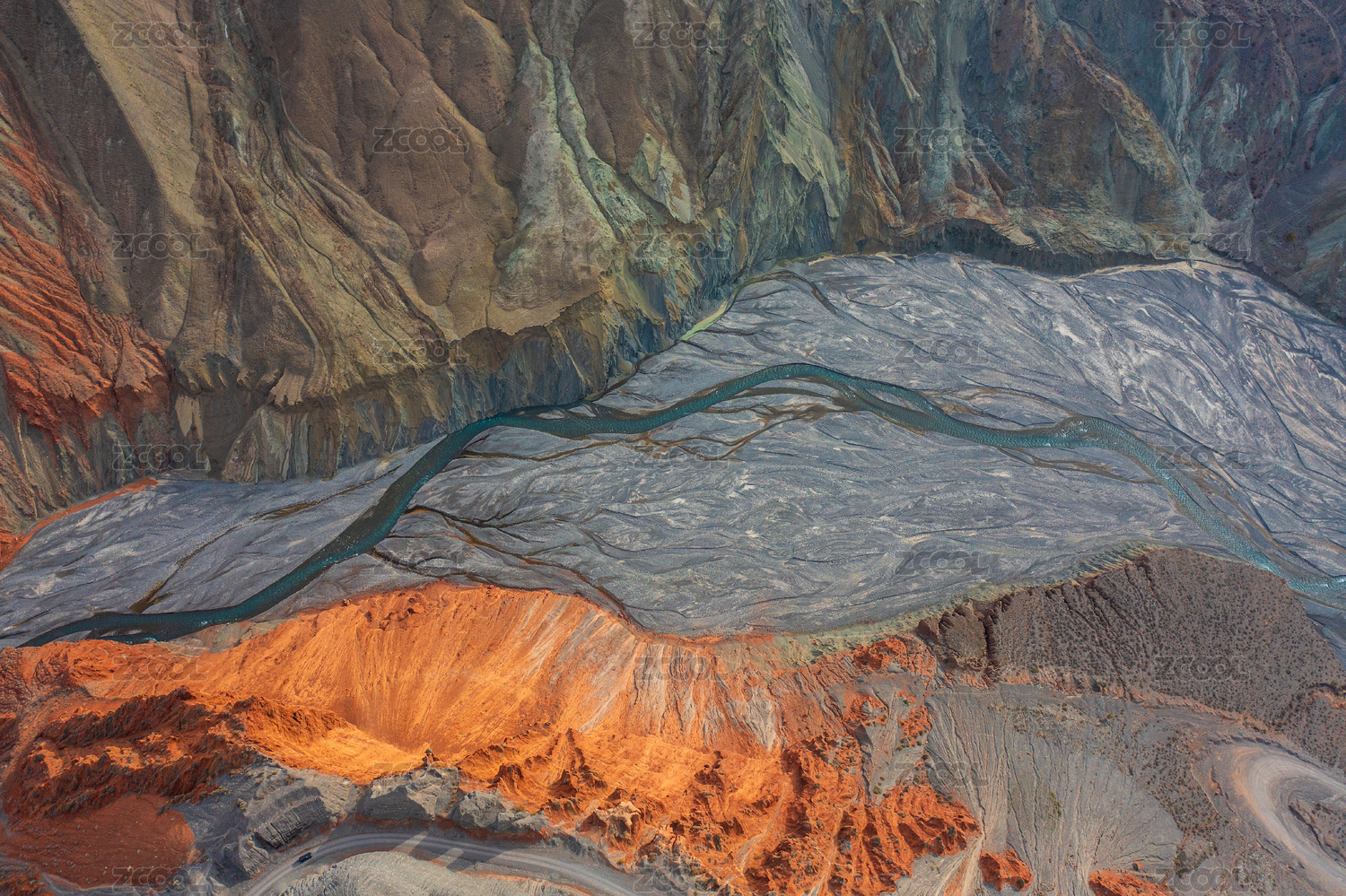 航拍俯瞰中国新疆安集海大峡谷独特的天然地质地貌纹路