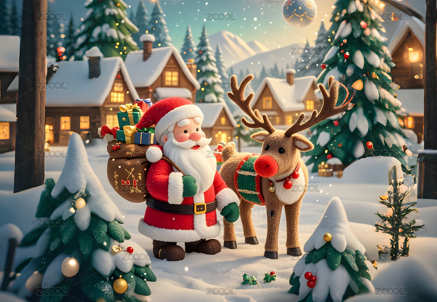 圣诞老人与驯鹿