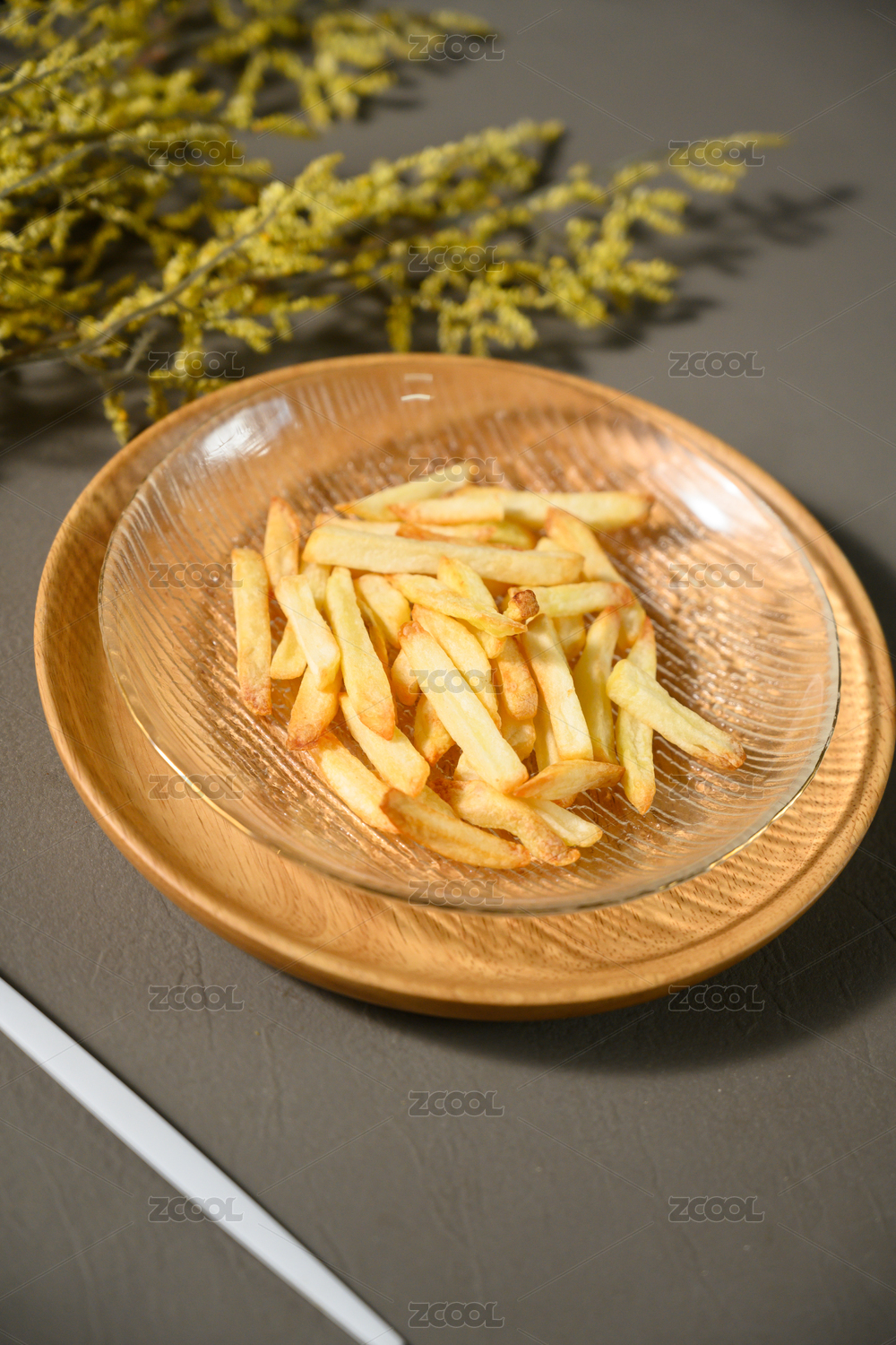 桌面上的盘子里的美味可口的油炸鱿鱼丝