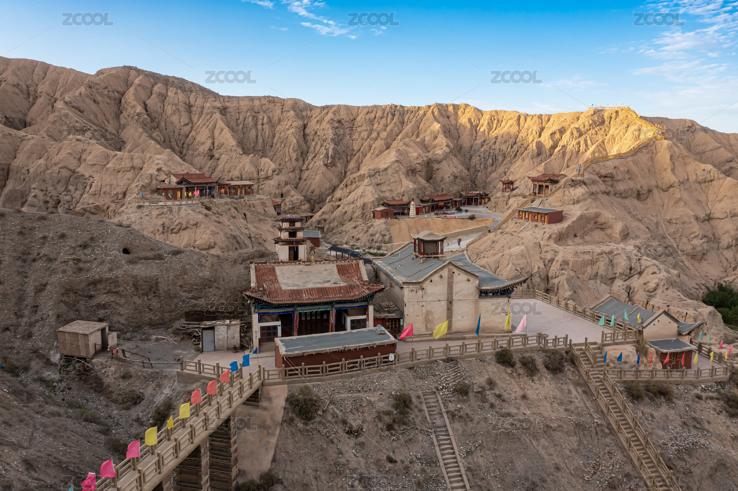 中国甘肃张掖肃南祁丰乡文殊寺景区航拍