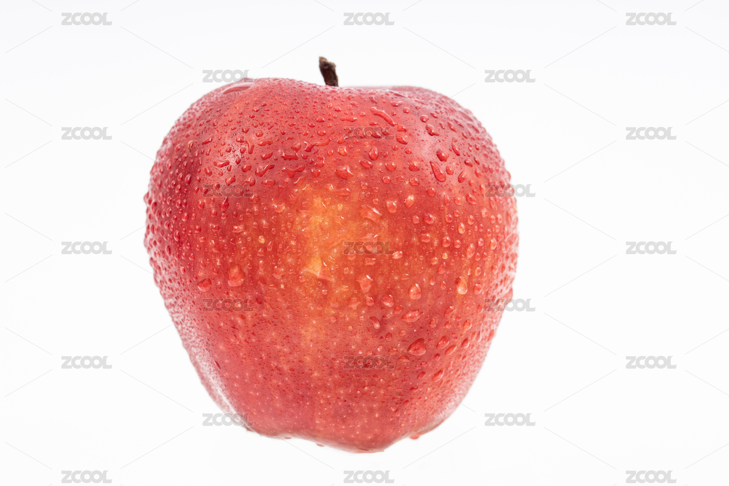 白色背景中带水珠的红苹果