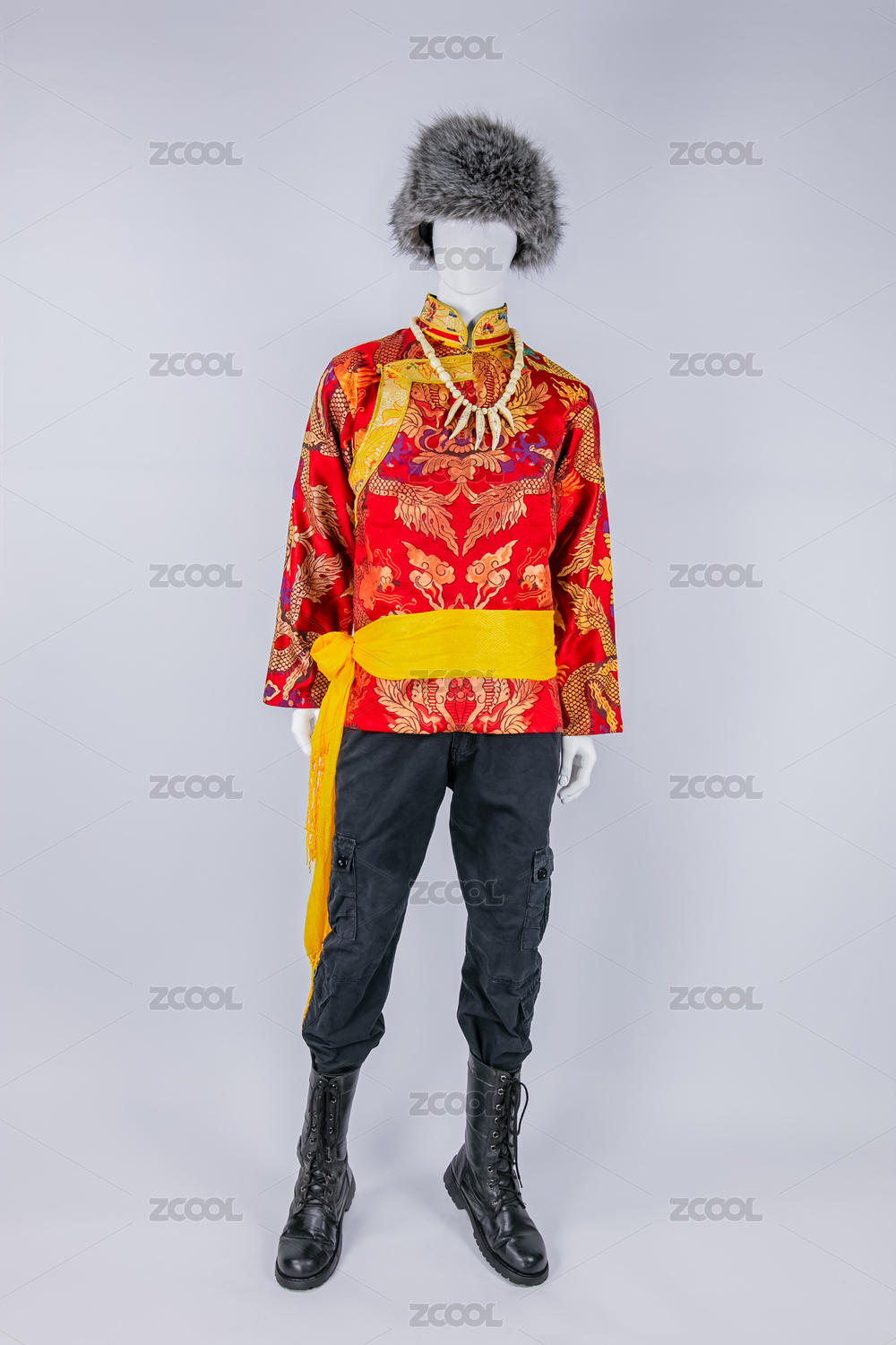 中国藏族冬季羊绒皮草保暖套装服饰