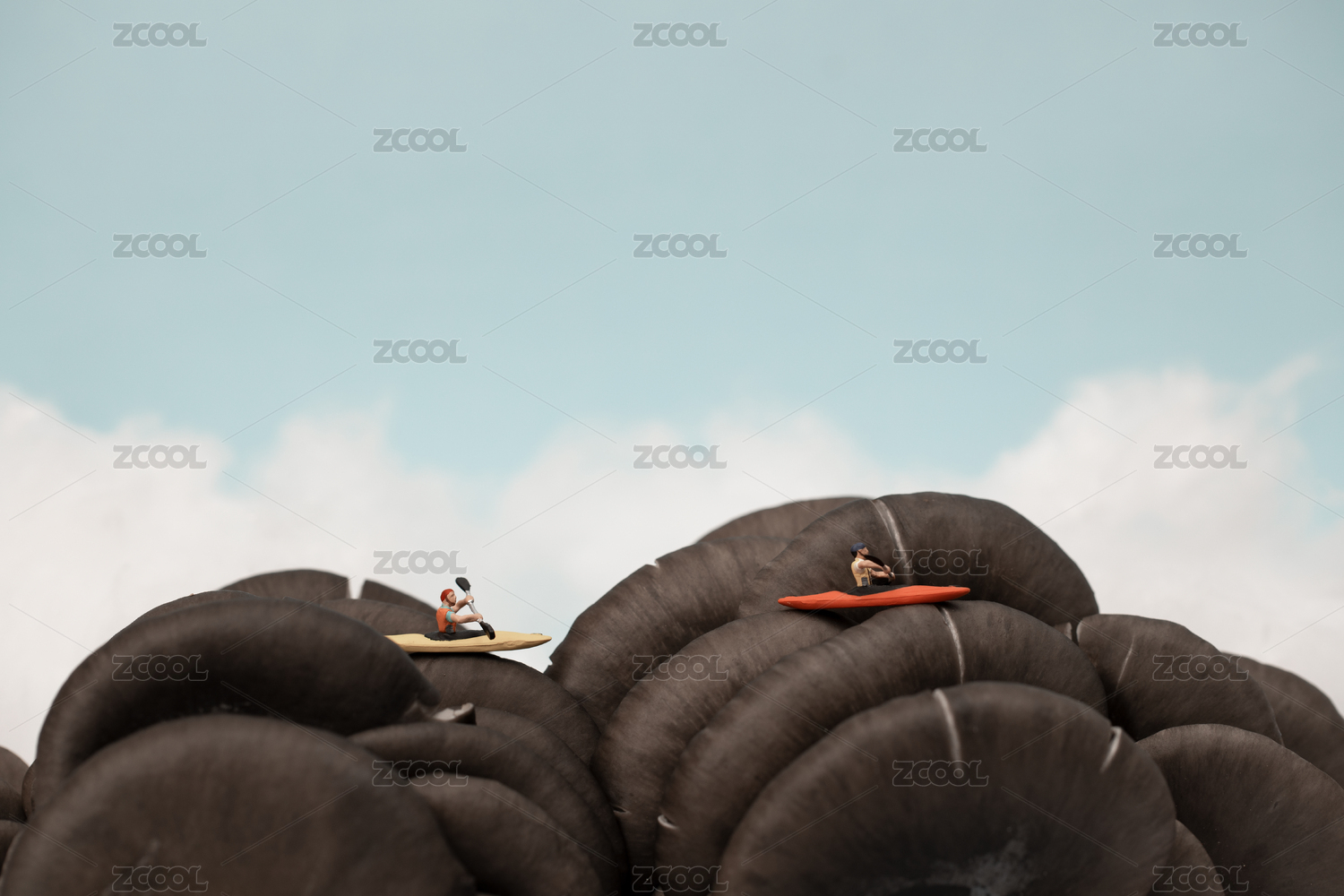 微缩创意春天骑行爬山看云的人