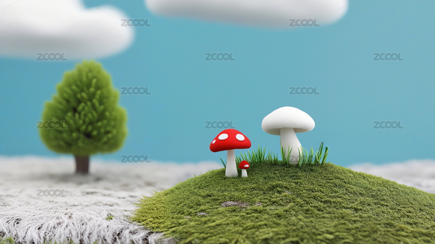 3D毛毡卡通蘑菇壁纸插画