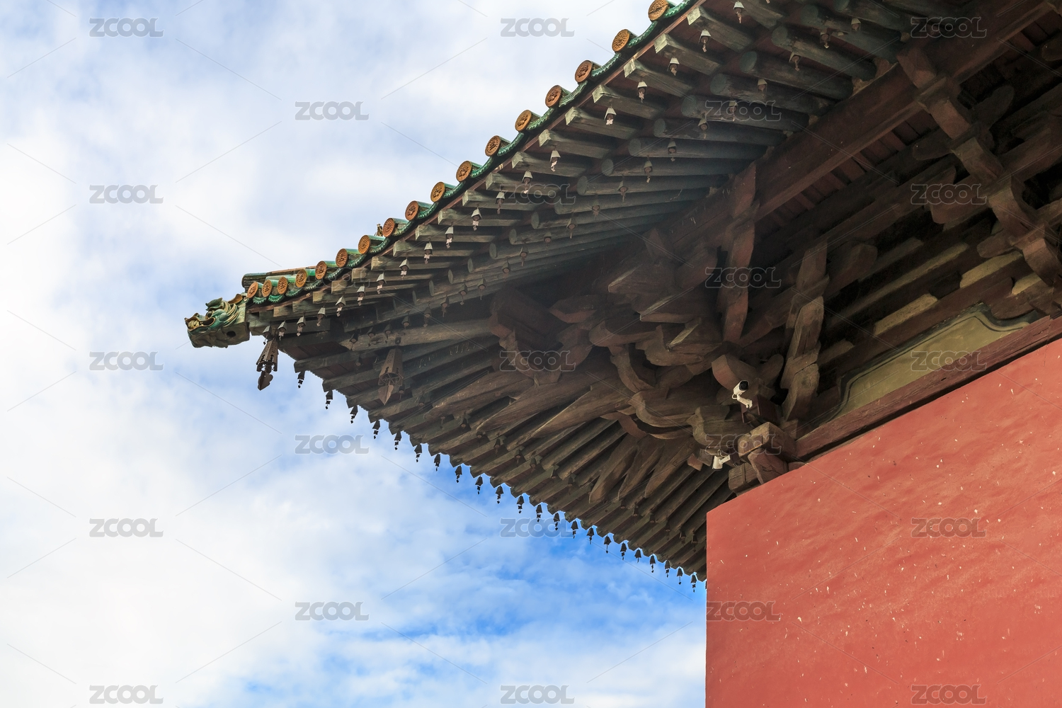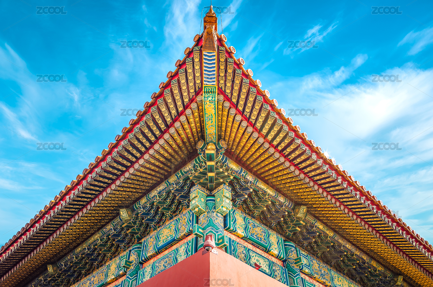 晴朗的蓝天下中国北京故宫博物院乾清宫屋檐特写