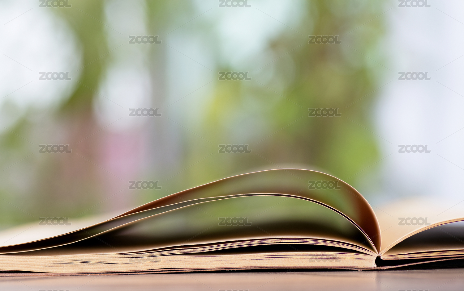 绿色虚化背景前一本翻开的书