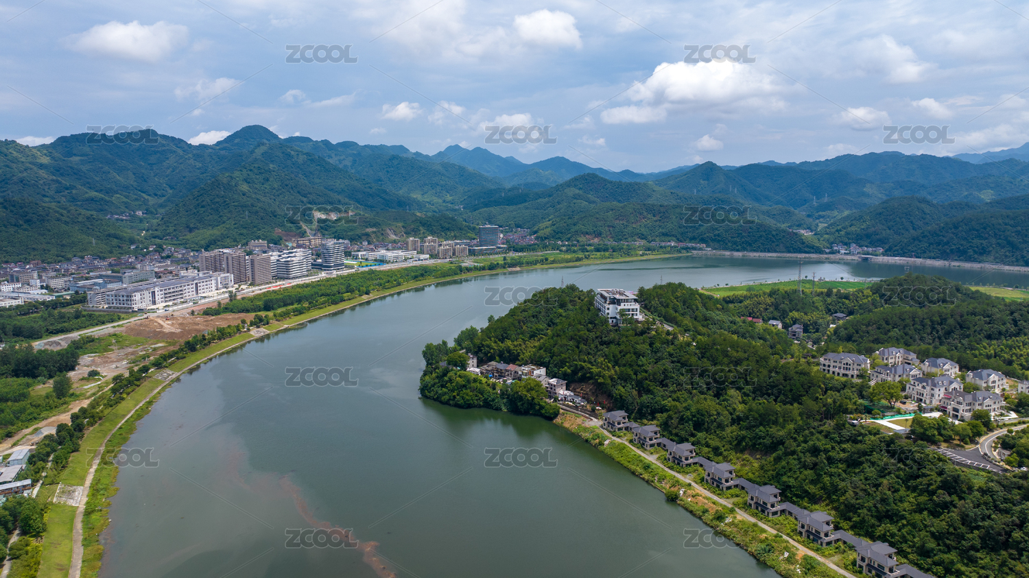 航拍秋日傍晚浙江上虞丁宅乡山村美景