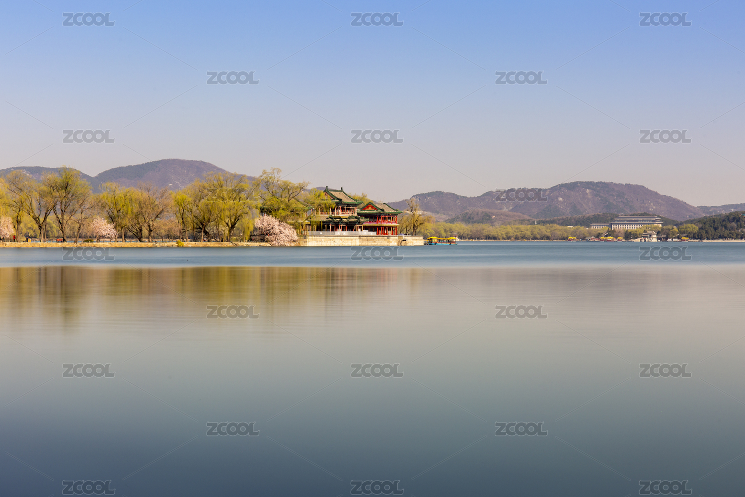 春天颐和园西堤上的景明楼
