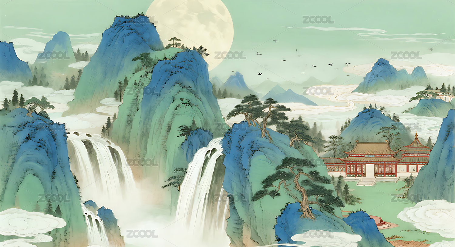 AIGC202402,中国传统,山水,纹样,中国风,插画,背景