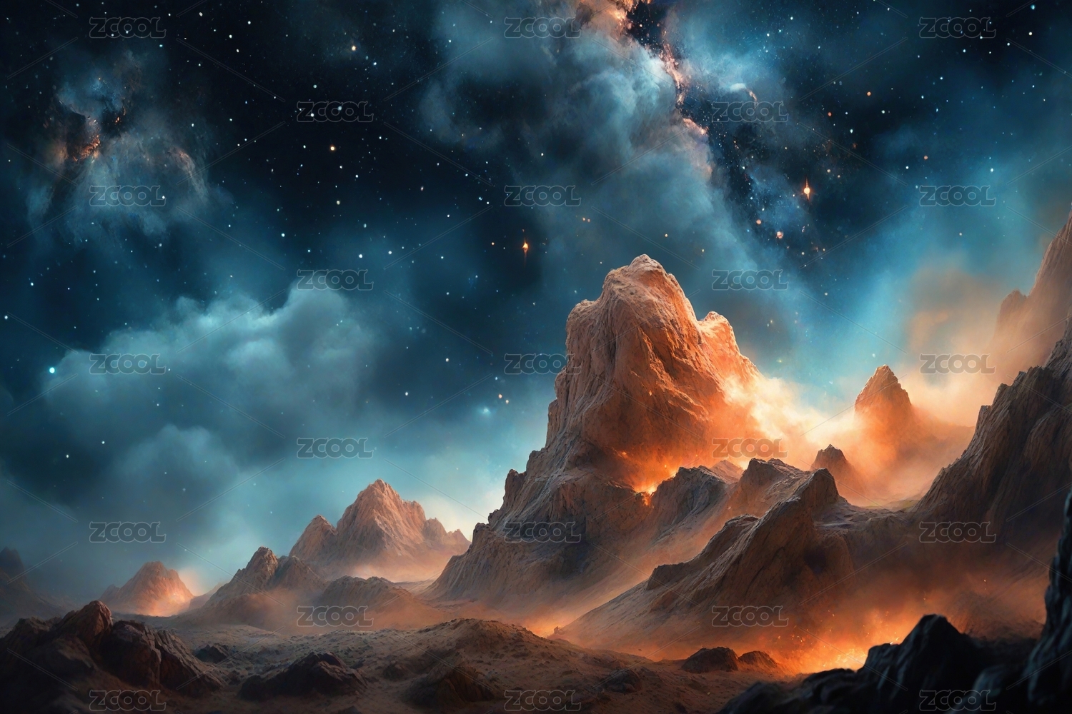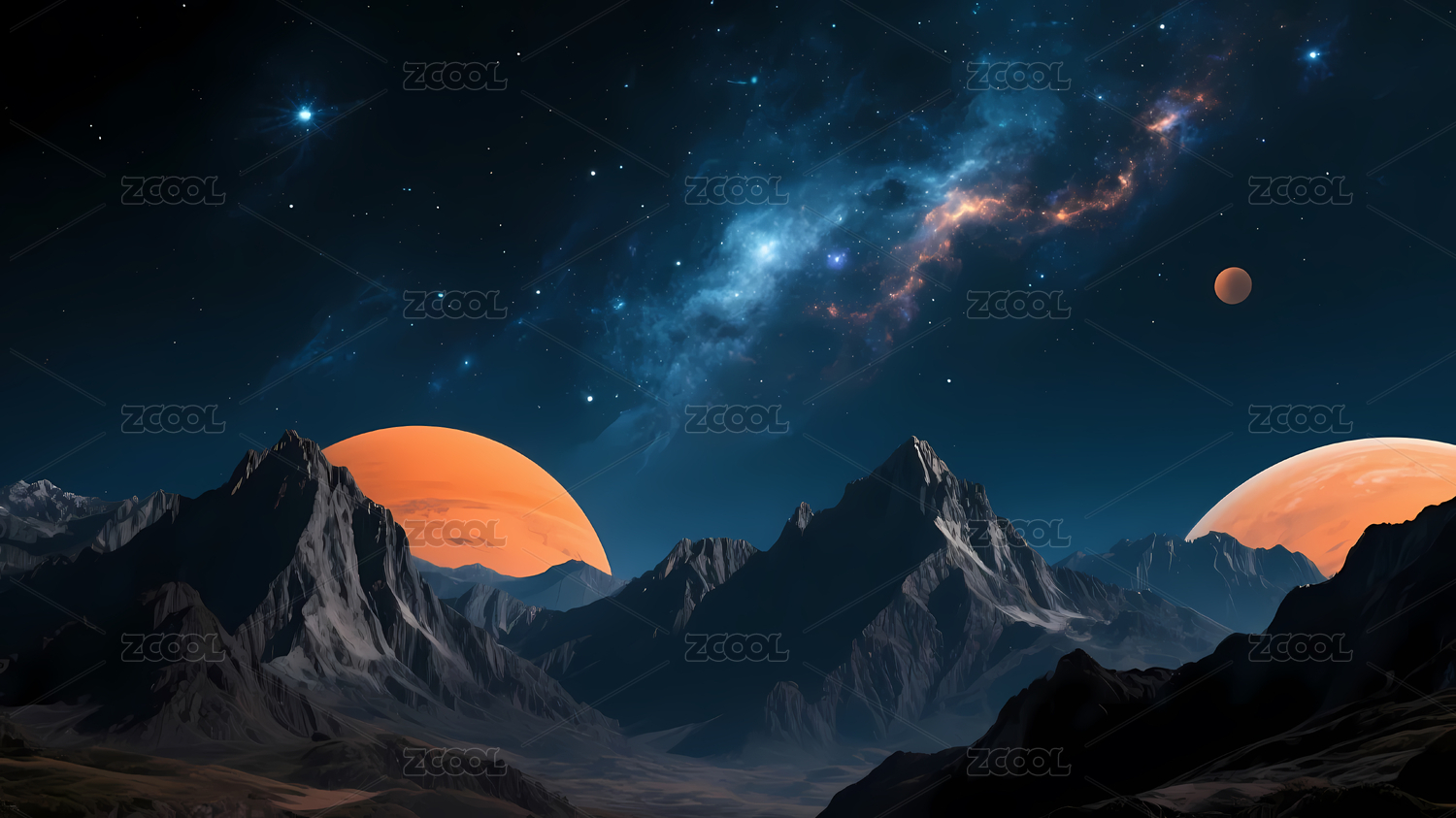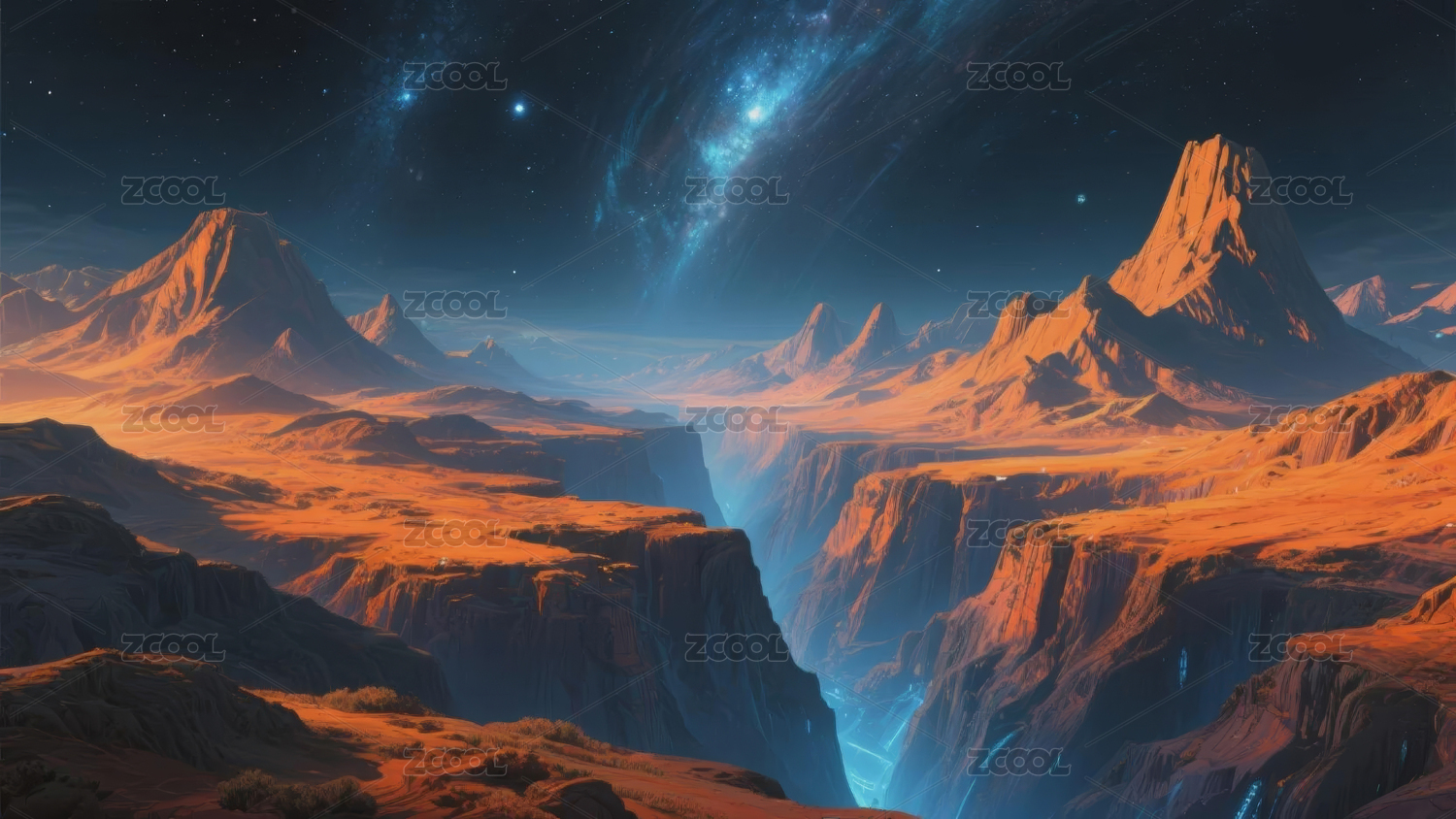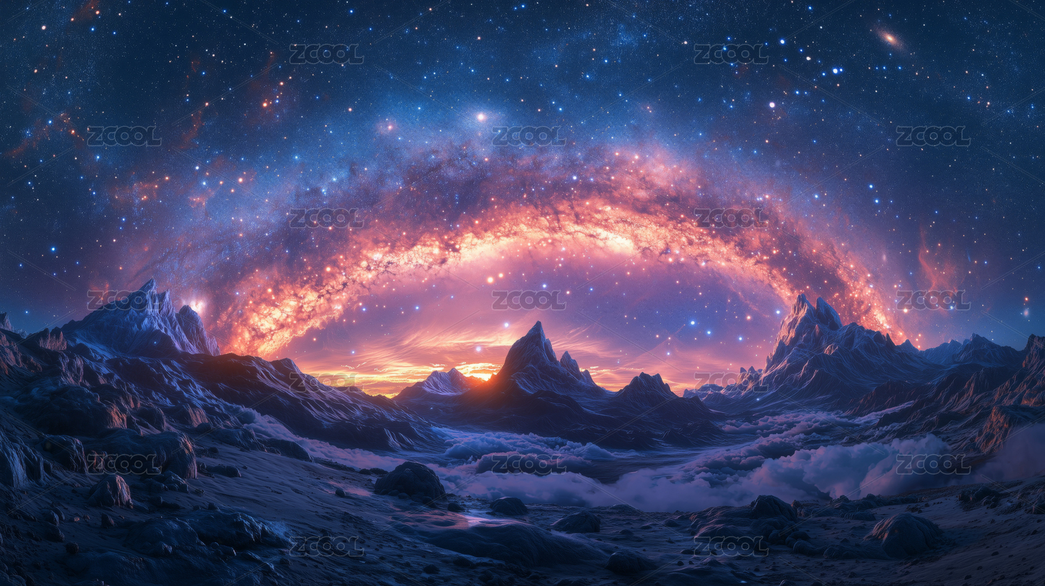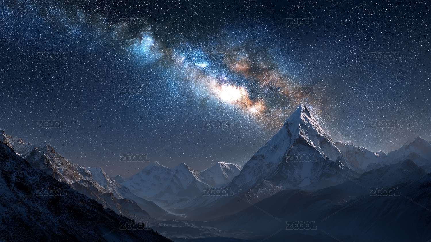 星空,山脉,夜晚,银河,高山,峰顶,天空,星光,云彩,山谷