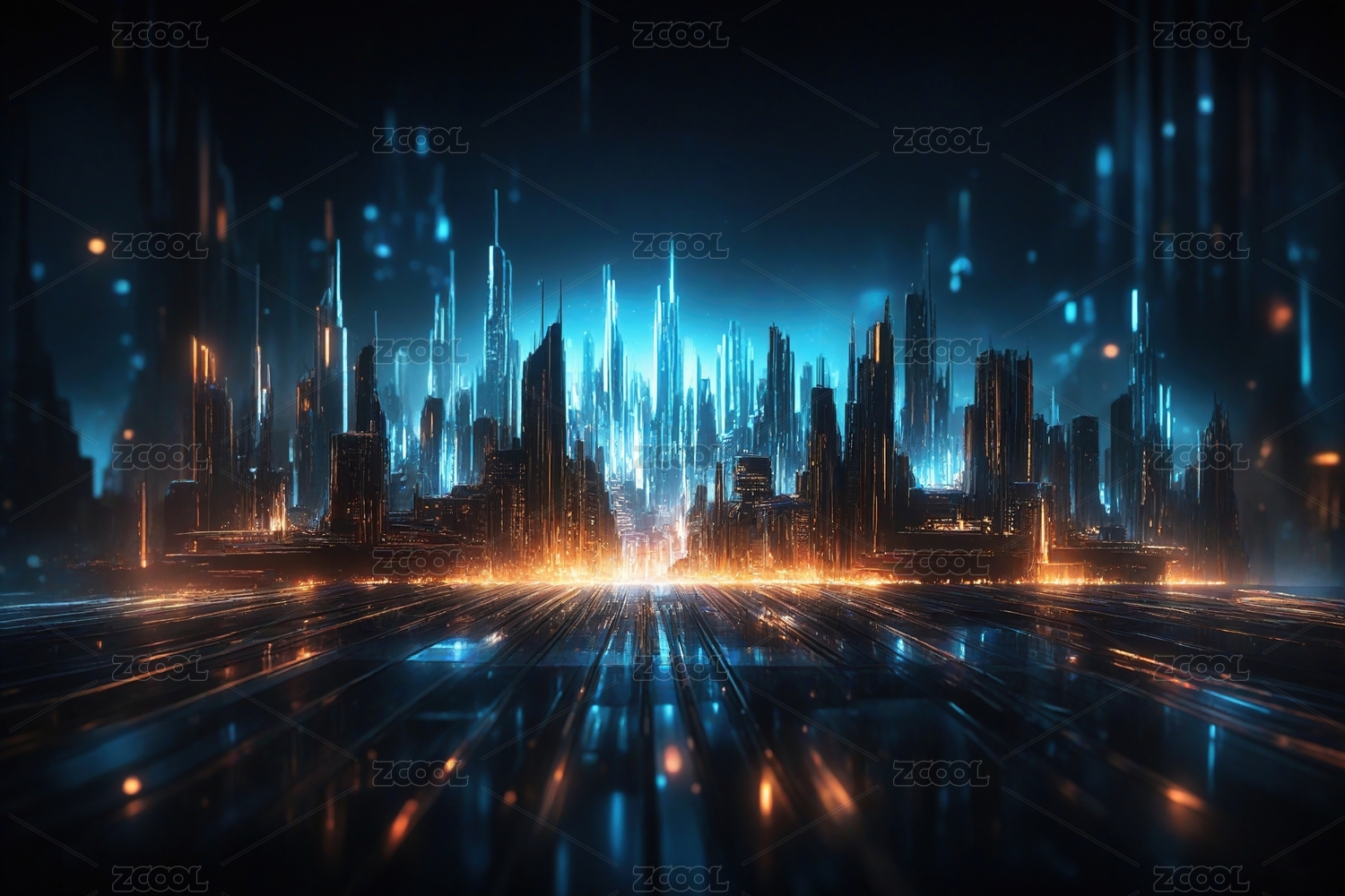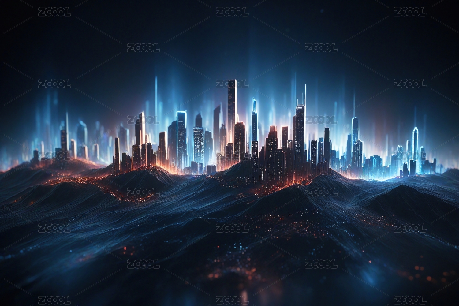 科技,未来,城市,夜景,高楼大厦,灯光,海浪,数字化,虚拟现实,光线