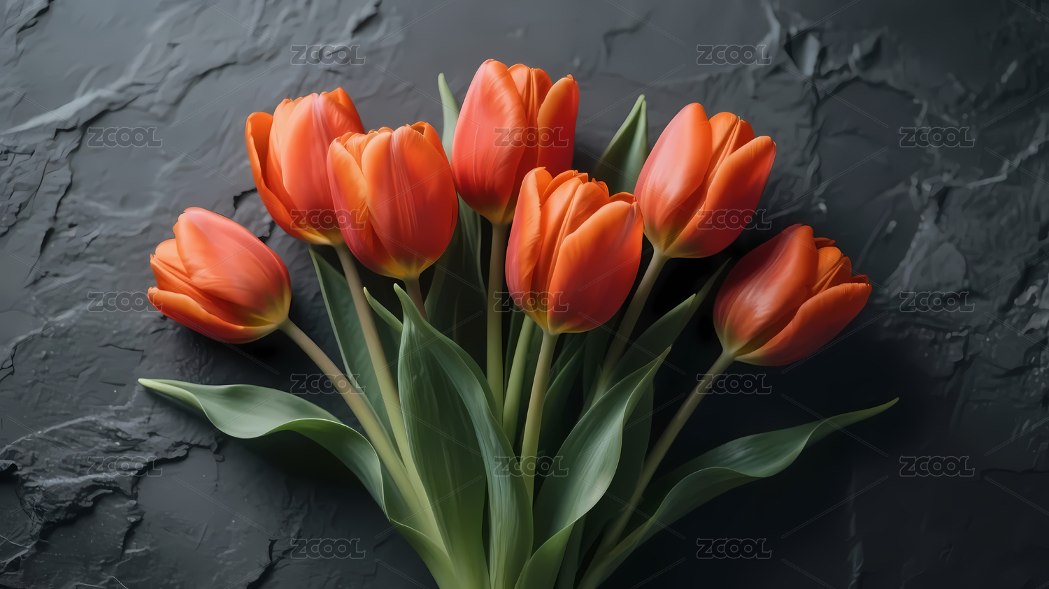 郁金香,花朵,粉色,黄色,绿叶,植物,自然,春天,鲜艳,生命力