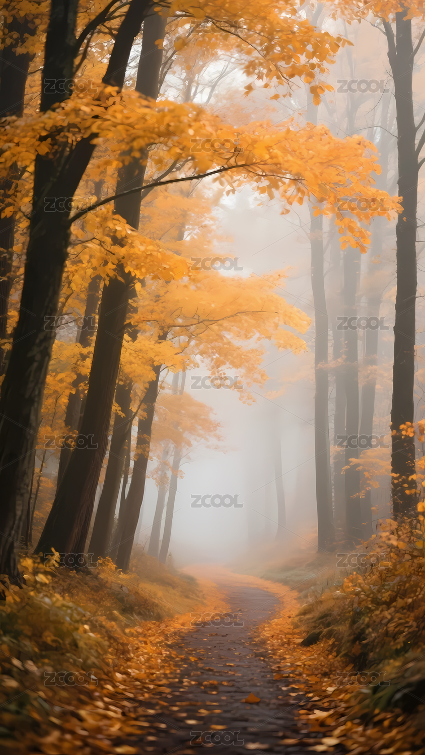 秋日,迷雾,林间,小路,树木,黄叶,雾气,道路,自然,风景