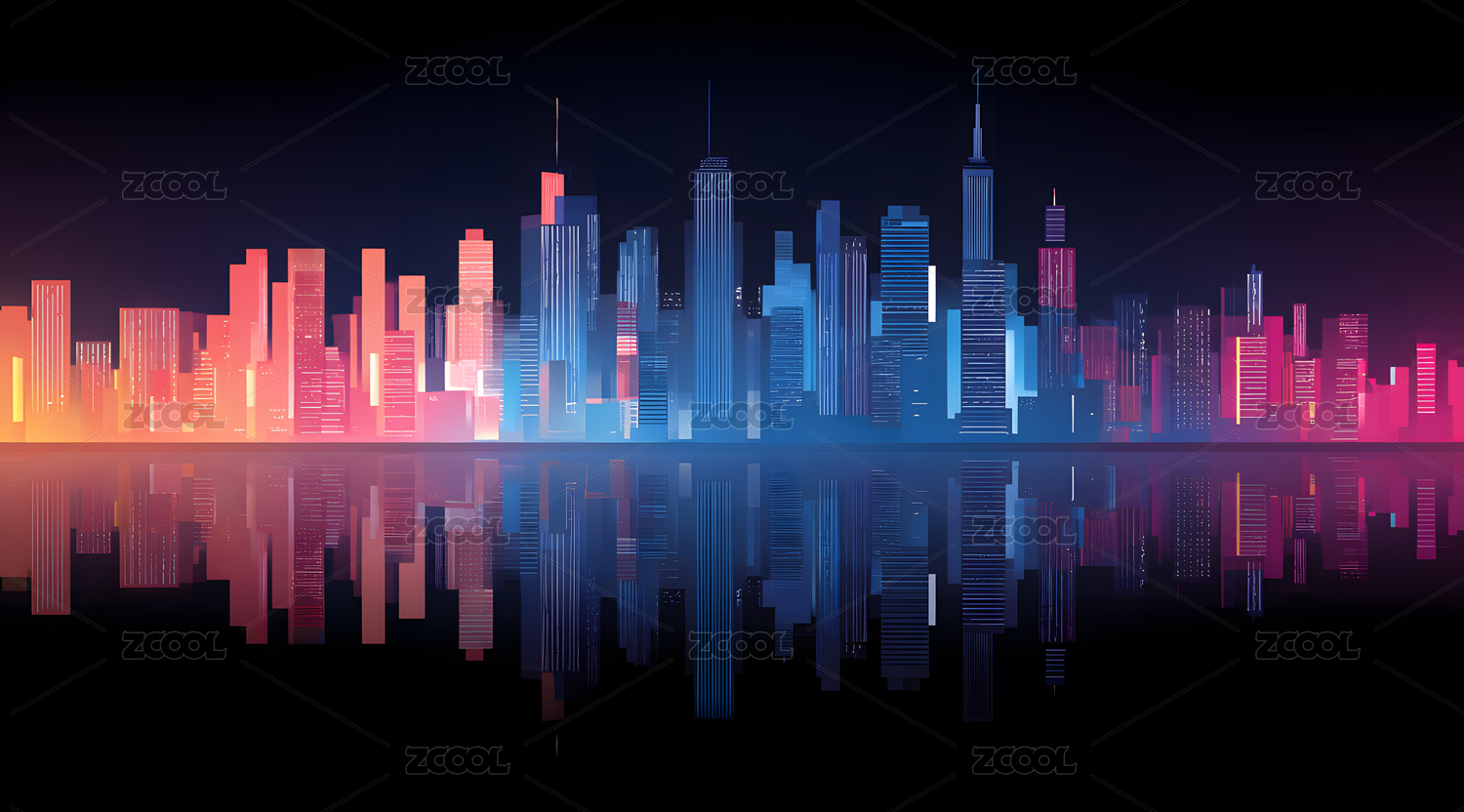 未来,城市,夜景,建筑,灯光,色彩,红色,蓝色,黑色,高楼