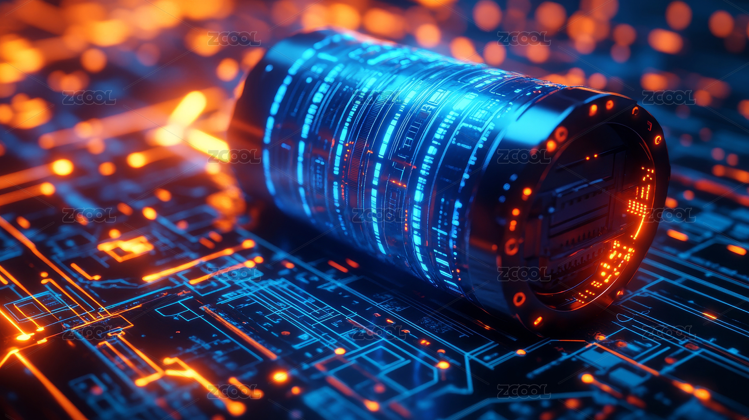 发光橙色圆柱电路板