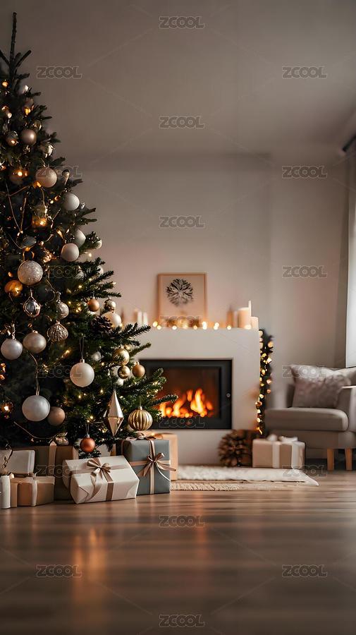 圣诞节,圣诞树,圣诞老人,麋鹿,壁炉,礼物,红绿配色,DXCZ202402,海报,设计