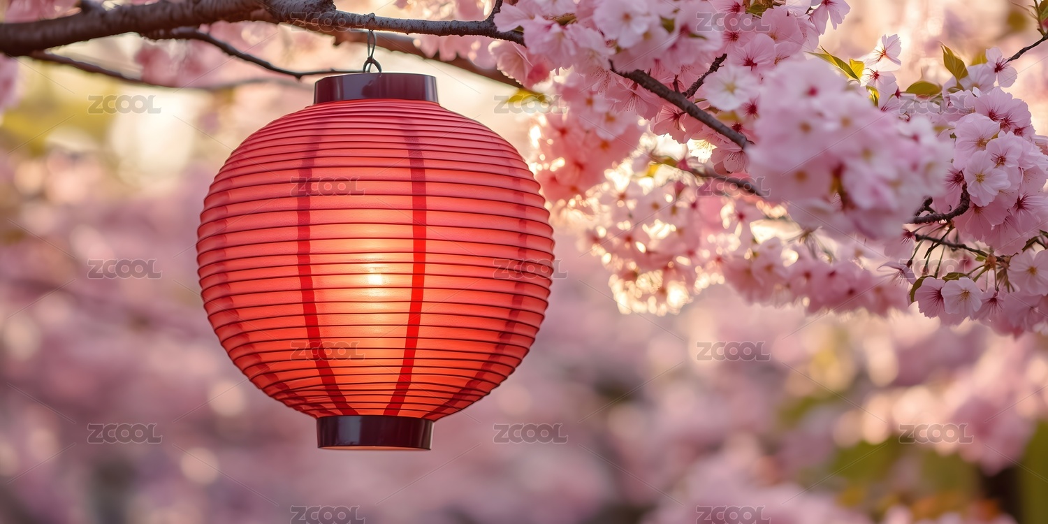 樱花树下的红色灯笼