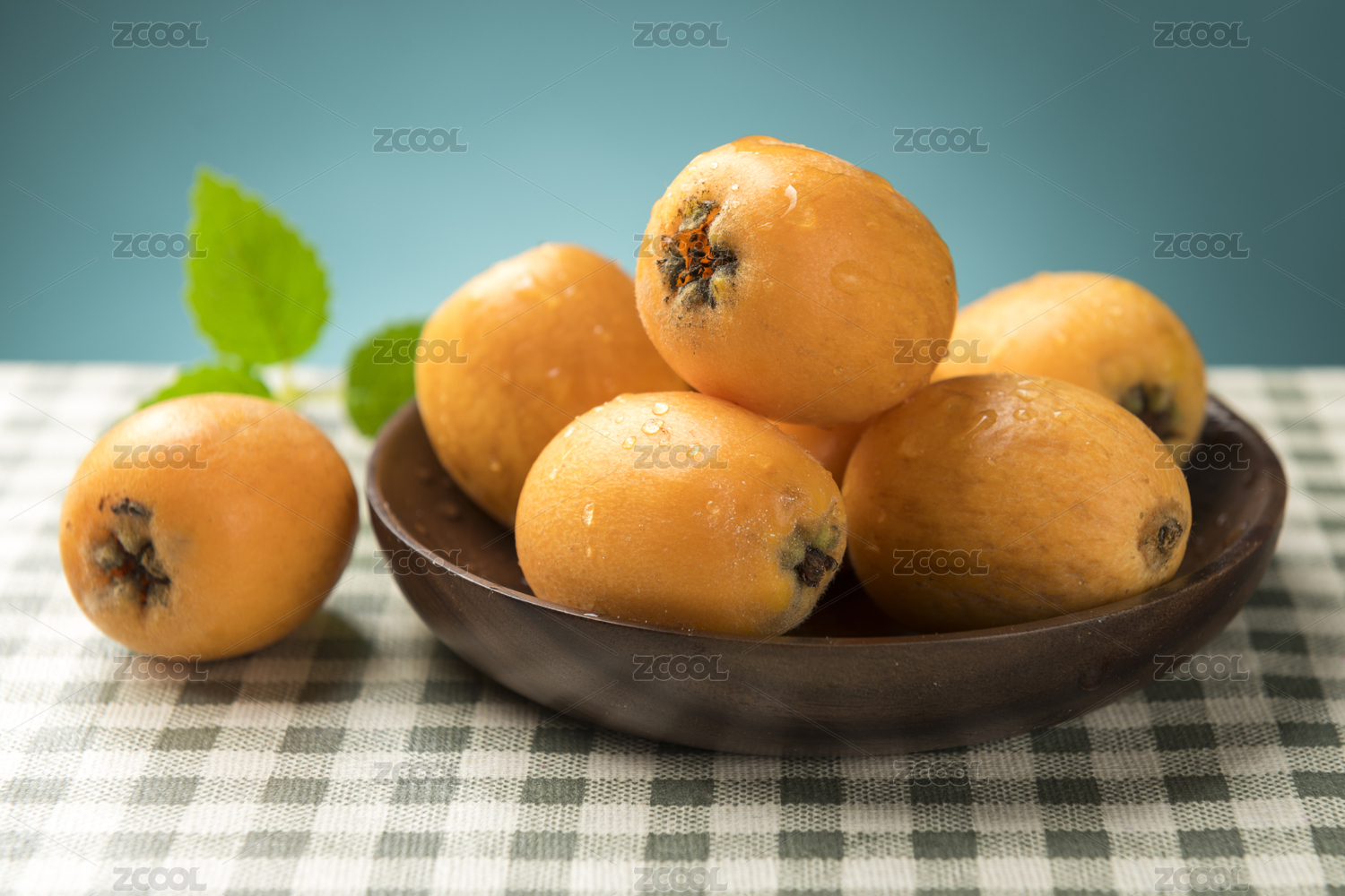 切开露出枇杷核的新鲜枇杷放在木盘里