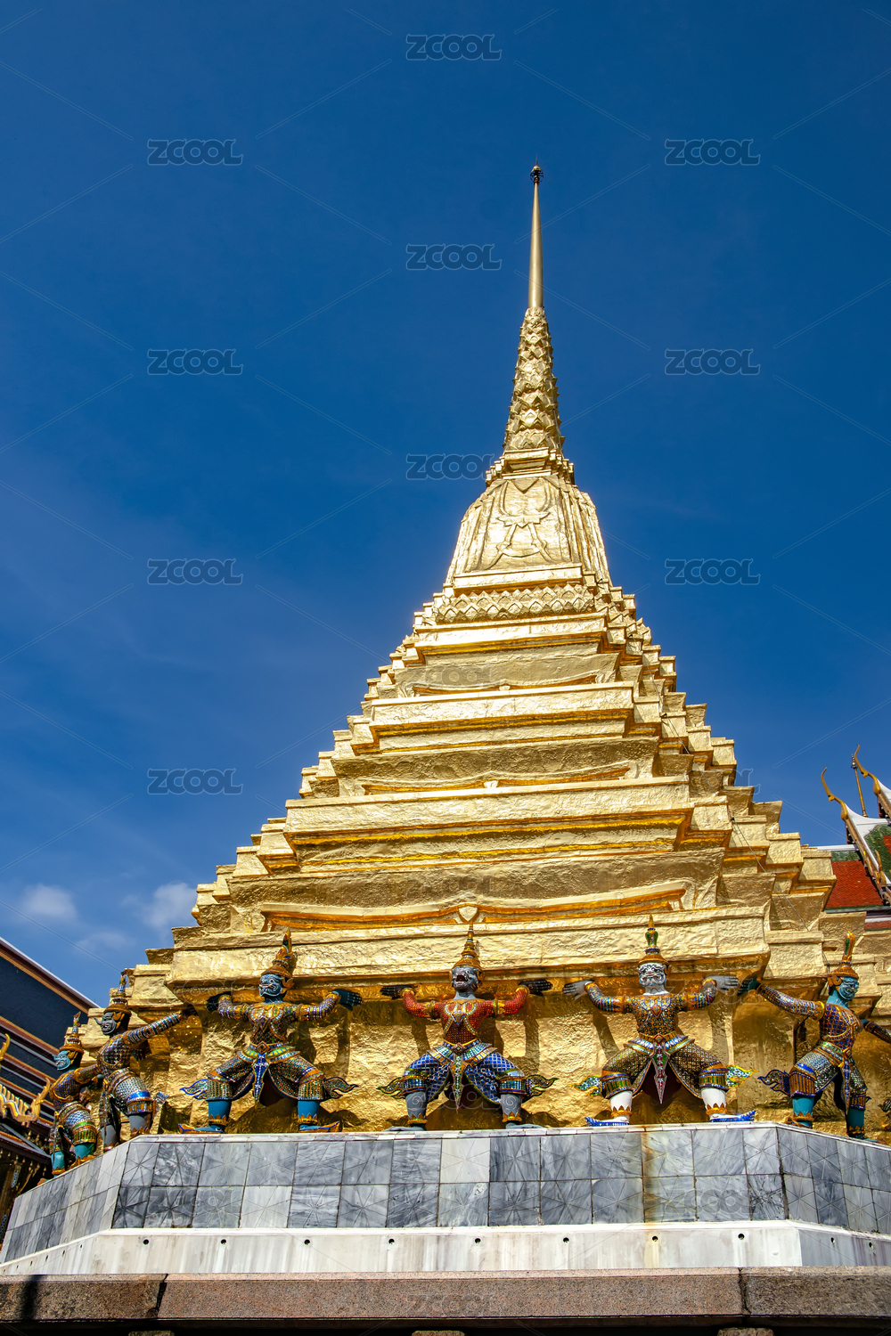蓝天白云下清迈素贴山上金币辉煌双龙寺中的舍利塔