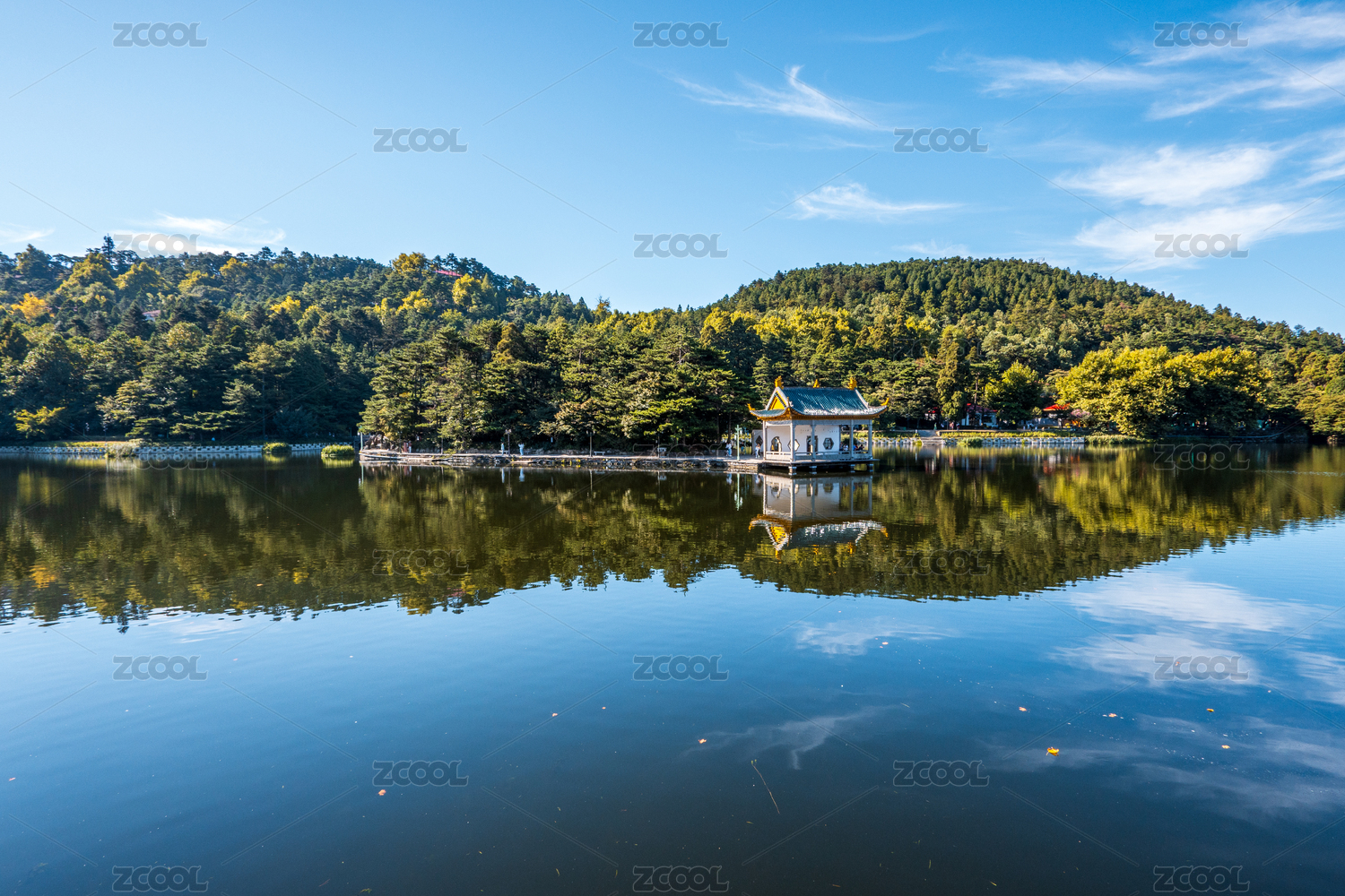 秋天蓝天下的中国江苏省南京明孝陵景区燕雀湖台