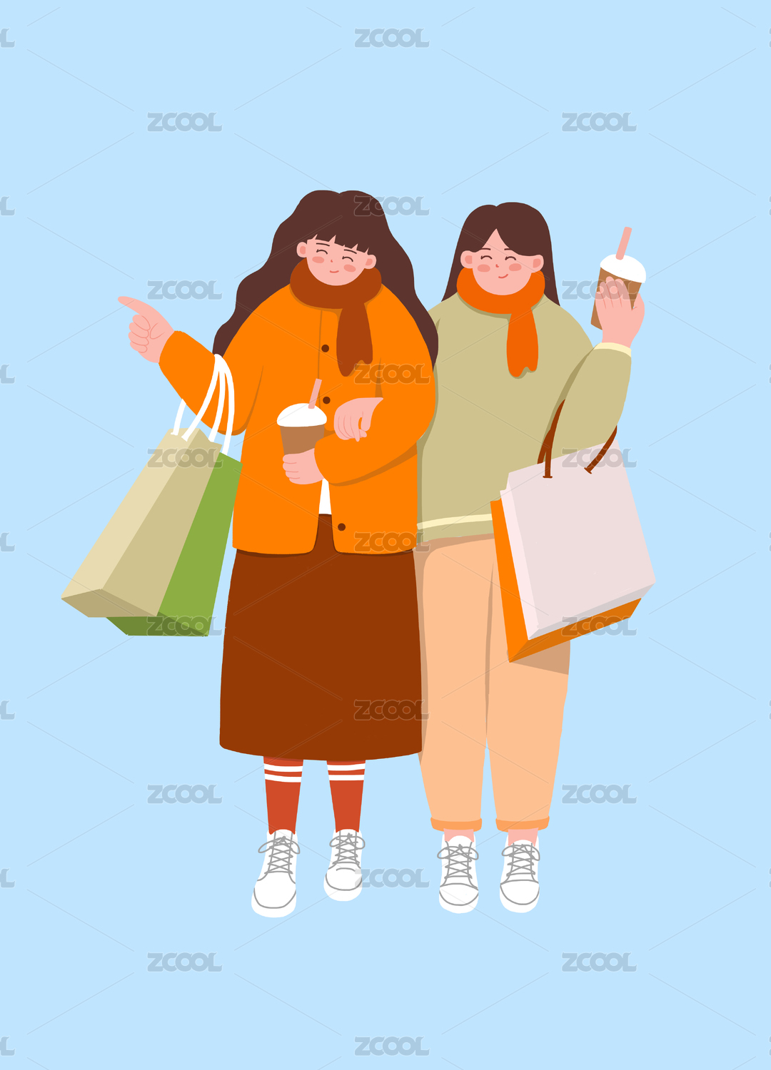 闺蜜购物逛街买东西插画