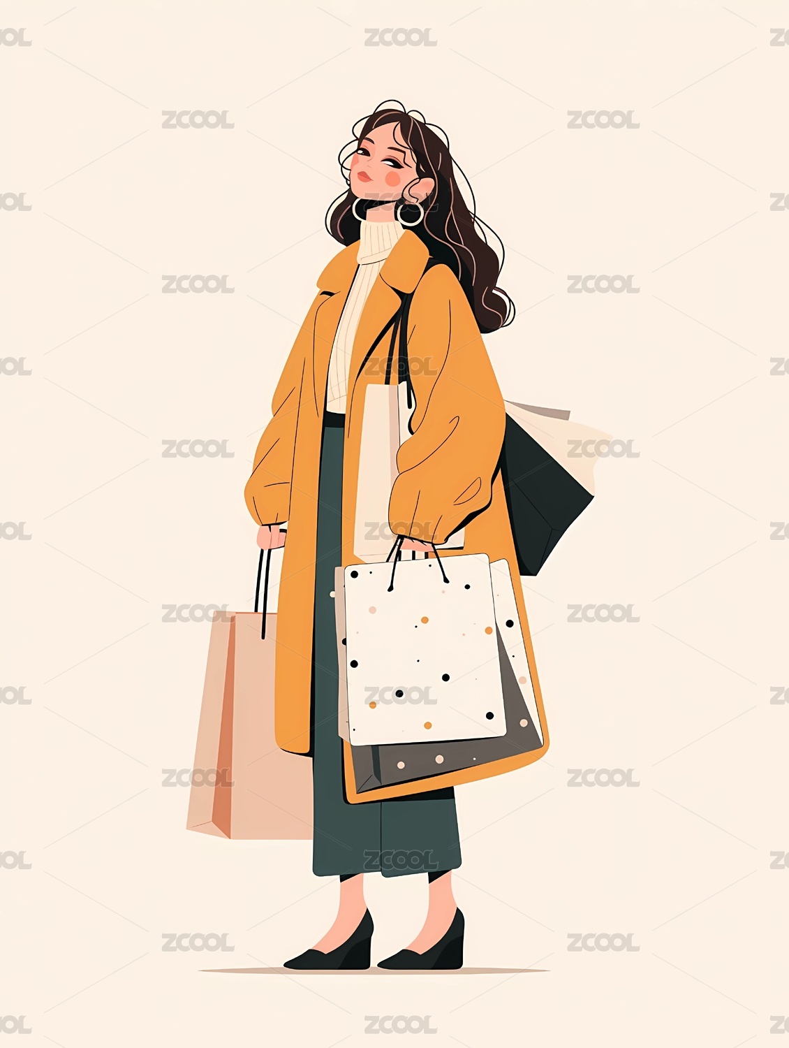 提着购物袋的卡通女人插画